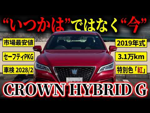 【重要】 当車両は次期車の納期の関係上、5/11まで使用予定ですので、納車までのスケジュール感は5月末〜6月中旬頃となります。(要相談) 購入申請は随時受け付けておりますので、お待ちしております! 【車両オプション装備】 ◾︎ジャパンカラーセレクションパッケージ 紅 ¥108,000 ◾︎セーフティパッケージPlus ¥125,280 ・パノラミックビューモニター ・パーキングアシスト2 ・後方歩行者、リアカメラディテクション ◾︎レザーシートパッケージ ¥300,240 ・本革シート ・前席シートヒーター/シートベンチレーション ・後席シートヒーター ・幾何学柄インテリア加飾 ◾︎ETC2.0 ◾︎純正ドライブレコーダー ◾︎TVキャンセラー(ディーラー施工) 【コーティング】 ◾︎CPCガラスコート 2019.5.29 ◾︎ NUNUFACTORY GCHGS One コーティング 2023.11.3 〇モデルの特徴 2019年式トヨタ クラウン ハイブリッド Gは、TNGA世代ならではの上質な乗り味と高い静粛性を備えたプレミアムセダンです。 2.5Lハイブリッドによる優れた燃費性能で維持費も抑えやすく、本革シートや先進のToyota Safety Senseを標準装備。高級感・安全性・経済性を高次元でバランスさせ、日常使いからロングドライブまで余裕をもって楽しめる満足度の高い一台です。 〇セールスポイント 当車両は3年ほど前に認定中古車を購入しています。前オーナーは法人所有でしたので、今も尚状態は良好です。前、現オーナー様はディーラー点検を行なっており、2026.2には車検も更新済みですので個人売買ながら安心感が高い1台です。 さらにオプションも豊富に備わっており、購入の決め手となったジャパンカラーセレクション紅!陽の当たり方によって魅せる姿を変えてれます!加えて安全性の上がるセーフティパッケージPlusや快適性を高めるレザーシートパッケージも備わりますので、リセールだけでなく所有感も満たしてくれる仕様です。 コーティングもしっかり施工しており、前オーナー様にプラスして、YouTuberとしても有名である「ぬぬファクトリー」さんでGCHGS One コーティングを施工していますので、未だ艶感がたっぷり残っています。 【車両状態】 ・フロントバンパー、トランク飛び石 ・左フロントドアドアパンチによるへこみ、タッチアップ(1cm程) ・左サイドミラーカバー擦り傷 ・その他査定に響くようなマイナス点は無く、車内は禁煙、ペット乗車歴なしで清潔感が保たれています ※本車両に対する予防整備(消耗品等)の不具合、劣化等に関しては免責事項となります。