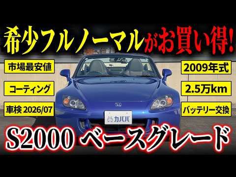 【モデルの特徴】 2009年式は、世界に誇るオープンスポーツカーとして君臨したS2000の最終イヤーにあたり、生産終了を惜しむファンから非常に高い支持を得ている年式です。ベースグレードでありながら、排気量を2.2リッターに拡大したエンジンを搭載しており、低中速回転域から力強いトルクを発生させるため、街乗りからワインディングまで扱いやすい特性を備えています。また、熟成の進んだ電子制御システム(VSA)が標準装備されていることで、スポーツ走行時の安心感が飛躍的に向上しているのもこの年式の大きな魅力です。ホンダのモータースポーツ魂を凝縮した最後期の完成体として、優れたコンディションを維持した個体は市場価値が極めて高く、所有する喜びと走る楽しさを高次元で両立できる一台といえます。 【本車両のココがオススメ!】 本車両は走行距離が約25000kmと少なく、改造のないフルノーマルの状態を維持した希少な一台です。2025年7月にはバッテリー交換に加え、ディーラーにてボディコーティングを施工しており、バミューダブルーパールの鮮やかな外装コンディションも良好に保たれています。最終年式の2.2リッターモデルとして、機関系から内外装に至るまで本来の質感が大切に守られており、メンテナンスの手間を抑えて乗り出せる点が大きな魅力です。低走行かつ標準状態を保った最終型をお探しの方にとって、非常に条件の整った個体といえます。 【車両状態】 ◎外装 -フロントガラス/フロントバンパー飛び石傷 -フロントバンパー 下擦り傷 -ボンネット クリアハゲ(小) -右フロントフェンダー 染み -右側前後フェンダー 板金塗装 -右ドア 交換 ※骨格に影響はございませんでした。 上記の他に微小な傷が数点見受けられましたが、年式を考慮しますと状態はかなり良好な一台でした。 ◎内装 シートに使用に伴うシワなどは見受けられましたが、傷や擦れなどは見受けられず、良好なコンディションでした。 ※本車両は10年以上前の車両のためノークレームノーリターンのお取引となります。予めご了承ください。 また、本車両に対する予防整備(消耗品等)の不具合、劣化等に関しては免責事項となります。