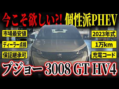 【装備一覧】 ⚫︎パノラマルーフ ⚫︎フロントシートヒーター ⚫︎運転席マルチポイントランバーサポート ⚫︎ダウンヒルアシストコントロール ⚫︎ドライブレコーダー ⚫︎充電ケーブルあり 【車両紹介】 フランス車らしいデザイン性と先進パワートレインを融合させた、2023年式 プジョー3008 GT ハイブリッド4。 1.6Lターボエンジンに前後モーターを組み合わせたプラグインハイブリッド4WDシステムを搭載し、力強い加速と高い環境性能を両立したSUVです。 エクステリアは、ライオンの牙をモチーフにしたLEDデイライトや立体的なフロントグリルなど、プジョーらしい個性的で洗練されたデザインが魅力。インテリアには未来感のあるi-Cockpitが採用され、コンパクトステアリングとデジタルメーターによるドライバー中心のコックピットが特徴です。 今回ご紹介する個体はGTグレードのハイブリッド4。 高級感のある内外装に加え、PHEVならではの静粛性とパワフルな走りを楽しめます。さらに充電コードも付属しているため、ご自宅などでの充電環境があれば電動走行をより活用できる一台です。 輸入SUVの中でもデザイン性と先進性を兼ね備えたモデルで、人とは少し違うSUVをお探しの方には非常に魅力的な選択肢です。 【どんな人におすすめか】 ・国産SUVとは違う個性的なデザインのSUVに乗りたい方 ・電動走行も楽しめるPHEVに興味がある方 ・輸入車らしい上質なインテリアや先進装備を重視する方 ・街乗りからロングドライブまで快適なSUVを探している方 【気になる車両の状態】 ■車内・エアコンのニオイ 清潔感のある車内を維持しており、ペットの乗車歴もございません。 ■エンジン音と振動 取材時のアイドリングは非常に安定しており、異音や不自然な振動は確認取れませんでした。 ■ガラスのキズ・状態 軽微な飛び石傷はありますが、現状車検に影響のある大きな破損なし。 ■外装 フロントバンパーに軽微な飛び石傷/左ドアミラーに擦り傷 その他に取材時大きく目立つ傷はなく全体的に年式を考慮する様綺麗な状態を維持されております。 ■内装 中古車ですので使用に伴う軽微な傷や汚れシワ等はありますが、破損等はない状態を維持しております。 【過去の整備記録】※取材時確認した記録 R6.11 1年点検 《重要》購入前にご確認をよろしくお願いします。 新車保証継承可能 最寄りの正規ディーラーにて12ヶ月点検相当の法定点検(有償)を実施することにより新車保証も継承可能なため個人売買ながらも安心してご購入いただけます! 本車両に対する予防整備(消耗品等)の不具合、劣化等に関しては免責事項となります。 ? お問い合わせをお待ちしております! お車のクオリティや動画での詳細な状態(査定スタッフの見解、タイヤのヒビなど)が気になる方は、どうぞお気軽にお問い合わせください!お客様のオンライン購入をサポートいたします!