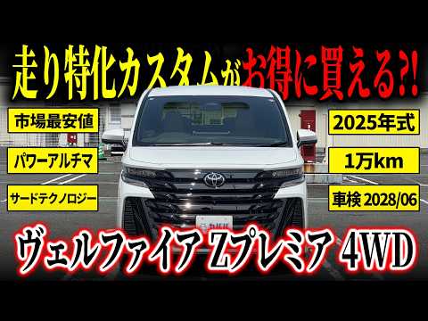 【車両おすすめ装備】 ・RAYS19インチ 鍛造ホイール ¥400,000 ・パワークラスター スーパーレーシング エンジンオイル+ATFフルード+デフオイル 全て交換済 ¥140,000 ・左右独立ムーンルーフ ・ユニバーサルステップ ¥60,000 ・TRD パフォーマンスダンパー ¥130,000 ・サードテクノロジー basis BT ¥40,000 ・basis BT+ ¥40,000 ⚡︎ サードテクノロジー RISE USB ¥24000 ※サードテクノロジー製品は 走りだけではなく、オーディオ音も良くなります ・SEV プレミアム パワーアルチマ ¥190,000 ・イグラセキュリティ ¥280,000 上記パーツ+最上級オイルにて2.4ターボの性能を更に強化+4WDなので確実に パワーを路面に伝えてくれます! 後付けパーツは117万円程かかってます。 走りに関しては、ノーマル2.4ターボより段違いに良く、それでいて乗り心地や扱い易さはノーマル車同様です! ※純正ホイール、サマータイヤはございませんので予めご了承ください 〇モデルの特徴 トヨタ ヴェルファイアは上質な移動空間を追求したプレミアムミニバンの代表格です。 Zプレミアは外装・内装ともに高級感を重視したグレードで、ゆとりある室内空間と静粛性、快適装備を充実させているのが特徴。4WD設定により安定した走行性能を確保し、寒冷地仕様の採用で積雪地域でも安心して使えます。 最新の安全・コネクティビティ機能が揃うため、日常からレジャーまで安心してお任せいただけます。 〇セールスポイント 今回の車両は、パフォーマンスダンパーやSEV、サードテクノロジーなど走行性能を底上げする装備を多数搭載。ボディ剛性や乗り味の向上により、高速域でもブレの少ないしなやかな走りを実現した走りに特化した仕様となっています。 さらに左右独立ムーンルーフやユニバーサルサイドステップといった人気オプションも備え、快適性と利便性も抜群。イグラセキュリティも装着されており、防犯面まで抜かりのない充実した一台です。 【車両状態】 ・内外装ともに査定に響くようなマイナス点は無く、車内の清潔感もしっかり保たれています