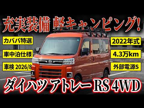 【オススメ装備】 ■外装色:トニコオレンジメタリック ■ホイール:LMG MS-9W マットブラック/レッドリム 12インチ ■RIDE-FiELD ルーフレール用ルーフラック ■AE340E オリジナルベッドボード ■外部電源システム ■9インチスマホ連携ディスプレイオーディオ ■デジタルインナーミラー ※純正タイヤ・ホイールセットとスタッドレスタイヤ・ホイールセットもございます。着払い郵送にてお渡し可能ですので、ご希望の方はお気軽にお問い合わせください。 【車両紹介】 タジマキャンパーが手掛けるアトレーA340Eは、車中泊に特化した即納可能な軽キャンピングカーです。ベース車両は上位グレードのRSで、力強い走りの4WDとスムーズなCVTを搭載しています。トニコオレンジメタリックのボディが目を惹き、アウトドアシーンに映えるアクティブな一台に仕上がっています。 外装にはLMG製12インチアルミホイールやルーフラックを装備し、オフロード感を演出しています。室内には専用設計のオリジナルベッドボードを備え、大人でも快適に就寝できるフラットな空間を実現しました。天井には制振・断熱処理が施されており、雨音の軽減や温度変化の抑制など、静寂性と快適性に優れています。 キャンプに欠かせない外部電源システムを完備し、エンジン停止中も車内で最大1500Wまでの家電が利用可能です。9インチディスプレイオーディオやデジタルインナーミラーなど、最新の運転支援デバイスも充実しています。さらに純正カーテンやシェードが標準装備のため、納車後すぐにプライバシーを守りながら旅を楽しめます。 タジマキャンパーが手がけた限定仕様のこの車両は、機能性と利便性を高次元で両立しています。街乗りから本格的な車中泊まで幅広く活躍する一台であり、軽キャンパーとしての完成度は非常に高いです。こだわり抜かれた装備の数々を、ぜひこの機会にご検討ください。 【車両状態】 ■外装 飛び石傷が数箇所ございましたが、まだまだボディの艶が残っており、全体的に大変綺麗なコンディションを保たれておりました。 ■エンジン音と振動 取材時、アイドリングは非常に安定しており、異音や不自然な振動は確認取れませんでした。 ■内装 トランクルームの内側に荷物の乗せ下ろしに伴う小傷と一部凹みがございましたが、全体的に良好な状態が保たれておりました。 ベッドボードに擦れはございましたので、予めご了承ください。 ■車内・エアコンのニオイ 清潔感のある車内を維持しており、タバコ臭・ペット臭など、不快なニオイは一切確認できませんでした。 写真や情報だけでは分かりづらい部分もあるかと思います。はじめての方でもご安心ください。お問い合わせいただければ、経験豊富なスタッフがすぐに丁寧にご案内いたします。 ご相談だけでも大歓迎ですので、ページ下部の『問い合わせボタン』よりお気軽にご連絡ください?