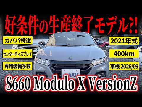 【オプション】 ◎センターディスプレイ ◎バックカメラ ◎純正フロアマット 【Modulo X Version Z専用装備】 ・専用フロントバンパー ・専用アクティブスポイラー ・専用サスペンション(5段階減衰力調整機構付) ・ドリルドディスクローター&スポーツブレーキパッド ・専用スポーツレザーシート ・専用インテリア加飾  ・ブラックエンブレム ・ステルスブラック塗装アルミホイール ・ブラック仕上げの専用アクティブスポイラー ・カーボン調インテリアパネル ・Version Zロゴ入りコンソールプレート  【付属品】 〇モデューロX専用コンソールバッグ(未使用) ※陸送の関係で別途着払い郵送になります。 ✅S660の集大成!「バージョンZ」! S660 モデューロX バージョンZは、S660の中でも走りの完成度と特別感を高めた集大成ともいえる仕様です。ベースとなるモデューロXは、専用フロントバンパーやアクティブスポイラー、専用サスペンション、ドリルドディスクローター&スポーツブレーキパッドなどが与えられ、標準車とはひと味違うしっかり感のあるハンドリングと高い安定感が魅力です。軽スポーツらしい軽快さを残しつつ、より質の高い走りを味わえる点はこのグレードならではです。 さらにバージョンZでは、ブラックエンブレムやステルスブラック塗装アルミホイール、カーボン調インテリアパネル、専用コンソールプレートなどが採用されており、通常のS660や通常のモデューロXとは異なる最終特別仕様車らしい特別感もしっかり備わっています。見た目だけでなく、所有満足度まで高められた1台です。  ✅ワンオーナーで低走行&状態良好! 本車両は市場でも稀な走行距離300km代と非常に低走行な個体です!ロングドライブや日常使いでは使っていませんが、エンジンの健康のために近所の超短距離の移動で月2~3回ご利用されていたとの事で、低走行ながら安心感がございます。 また、点検・車検はディーラーにて行われてきました! 低走行ということもあり、内外装ともに非常に使用感低く良好な状態が維持されております。 外装は屋根付きの駐車場でカバーを2枚かけて保管し、雨天未走行となるため非常に艶やかで美しいボディコンディションとなっております。 更に使用される際は社外品のフロアマットを敷いてご利用されてきたため、非常に清潔で、オプションのフロアマットも綺麗な状態を保っております! 【車輌状態】 〇外装 目立つキズやへこみなどは見られず、非常に良好な状態が維持されています。 〇内装 シミや破れなどは一切見受けられず、使用感の低い大変良好な状態を保たれています。 禁煙車のため気になる匂いも一切感じられません。