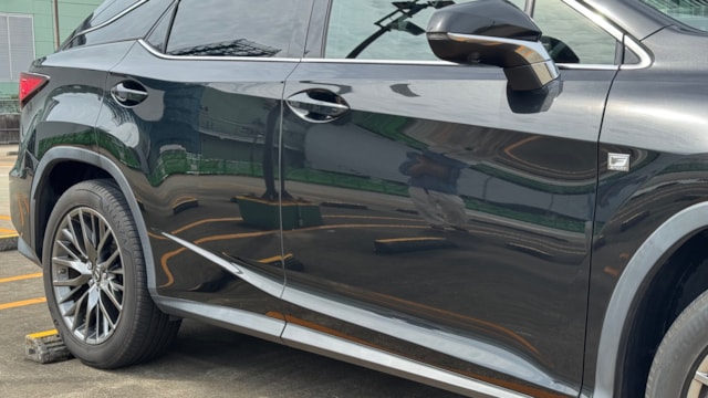 【オプション】 ⚪︎ムーンルーフ ⚪︎おくだけ充電 【おすすめ装備・仕様】 ◎Lexus Safety System + ・プリクラッシュセーフティ ・レーントレーシングアシスト[LTA] ・レーダークルーズコントロール(全車速追従機能付) ・ロードサインアシスト[RSA] ・ブラインドスポットモニター[BSM] ◎カラーヘッドアップディスプレイ ◎純正Fスポーツロゴ入りフロアマット ◎Fスポーツ専用スピンドルグリル/サイドグリル ◎Fスポーツ専用ブラック塗装ドアミラー ◎Fスポーツ専用アルミホイール ◎Fスポーツ専用エンブレム ◎Fスポーツ専用リヤロアバンパー ◎Fスポーツ専用ラゲージドアガーニッシュ ◎Fスポーツ専用ブラック本革スポーツシート ◎電動リアテールゲート 【車両紹介】 Fスポーツは、「RX」のスポーティグレードです。通常のRXが持つ上質さや快適性に加え、よりスポーティな走りと内外装デザインが特徴となっています。サスペンションやステアリングなどが専用にチューニングされており、操縦安定性とスポーティな乗り心地が追求されています。 ヘッドアップディスプレイやブラインドスポットモニターなどのドライバーに優しい機能に加えて、シートヒーター・ベンチレーション機能など快適性も抜群です。 本車両はオプションにムーンルーフを採用しているため開放的なドライブを楽しめる上付加価値の高い一台です。おくだけ充電も付いており利便性も高いお車に仕上がっております! 車検もしばらく残っていますので、人気高級SUV"RX"をお探しの方は是非ご検討ください! 【車両状態】 ⚪︎外装 ・フロントガラス/バンパー飛び石 ・左右Rホイールガリ傷 ・右Fドアモール微へこみ ・リアバンパー薄傷 上記見受けられます。 ⚪︎内装 中古車相応の使用感はありますが、目立った損傷や汚れなどは見られませんでした。 においに関しては禁煙車のため不快な匂いは感じられませんでしたが、芳香剤を使用しているためその香りが感じられます。