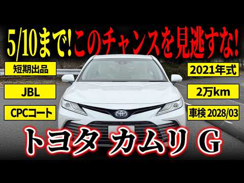 【車両おすすめ装備】 ・JBLプレミアムサウンドシステム ・Toyota Safety Sence ・ヘッドアップディスプレイ ・ETC車載器 ・ドライブレコーダー 【コーティング】 ・CPCプレミアムコーティング 2021.3.17 〇モデルの特徴 トヨタの人気車カムリ Gグレードになります! トヨタブランド、FFセダン最上級モデルに位置するカムリは2.5L 直列4気筒エンジン搭載のお車です! 本車両はより応答性の高い操舵フィーリングとフラットな走りを追求したサスペンションチューニングを行っていますので滑らかな走行性能をしているのが特徴です! 〇セールスポイント 大人気の70カムリ!その中でも生産終了した最終型です。ナビ周りが大きく変わり、アクセスがしやすくなっています。 さらに、オプションでJBLサウンドスピーカーも選択されていますので高音質が楽しめます。納車時にはCPCプレミアムコーティングを施工し、普段は屋内駐車場にて保管していますので、艶感や塗装面の状態は良好です。 新車時よりディーラー点検を定期的に行なっており、2028.3まで車検も残っていますので、購入後の費用も抑えられます! ※当車両は5/10まで使用いたします。購入申請は随時受け付けているので、お待ちしております。 【車両状態】 ・フロントバンパー左下部タッチアップ ・フロントバンパー下擦り ・左フロントリアホイール傷 ・リアバンパー、左フロントドアエッジ小傷 ・車内は不快な香りは無く車内の清潔感は保たれています