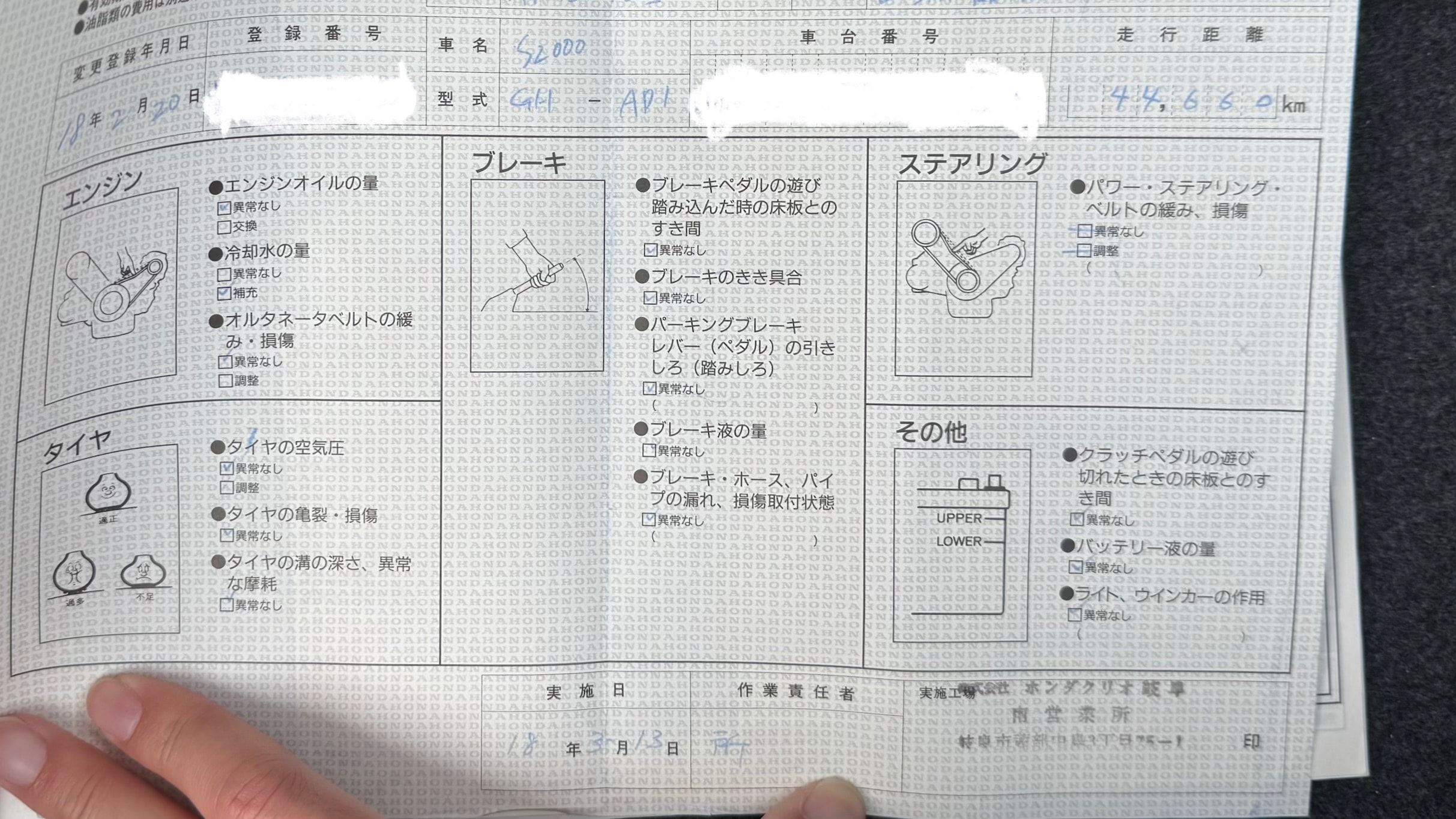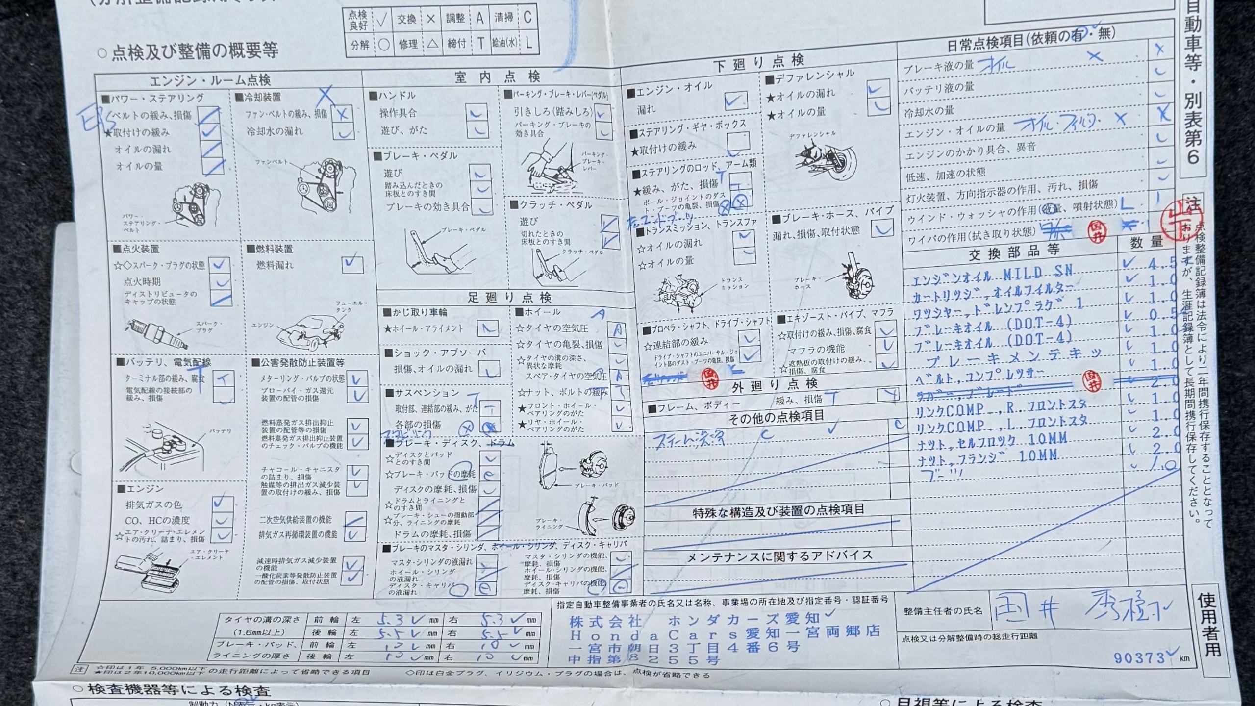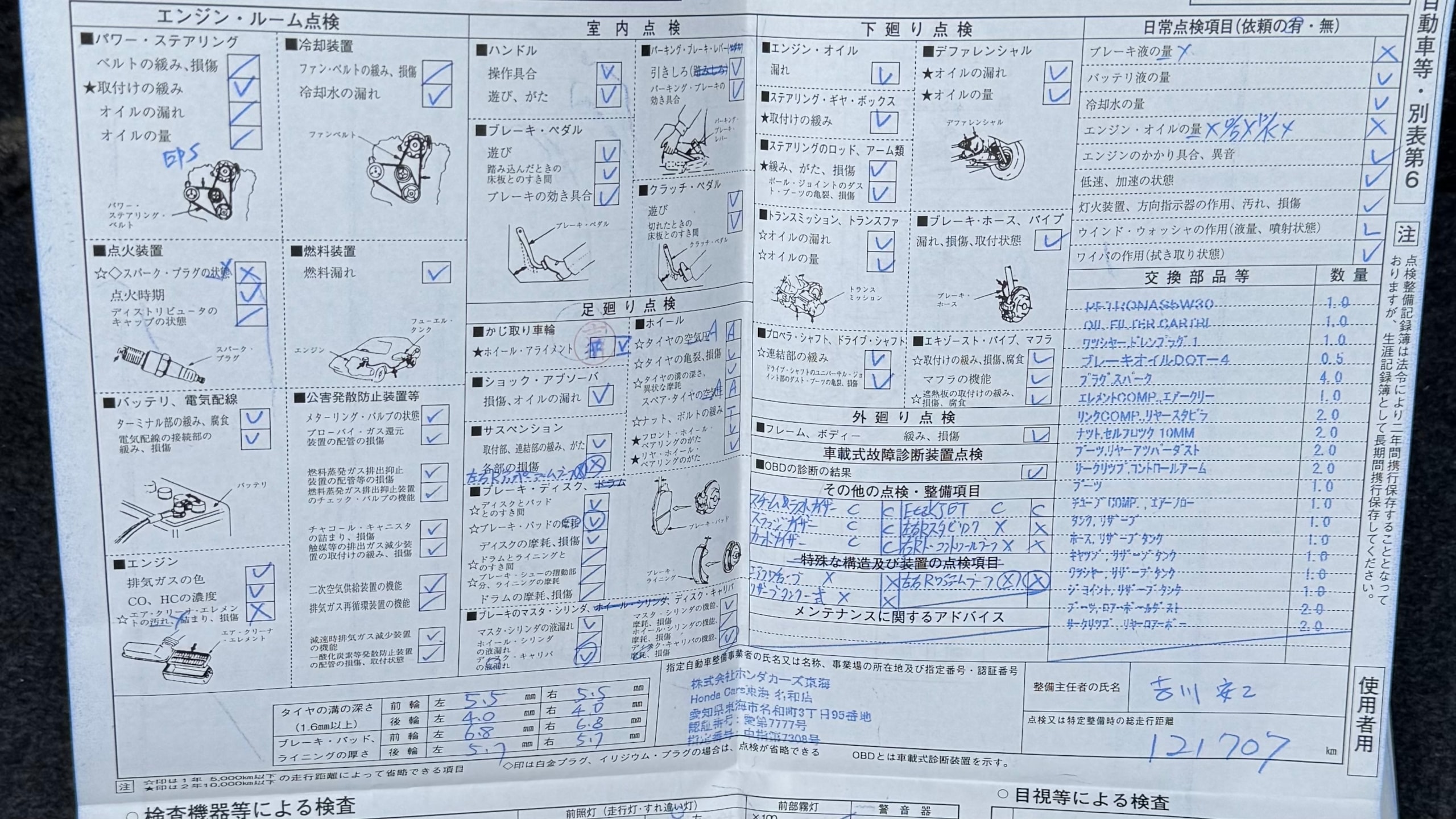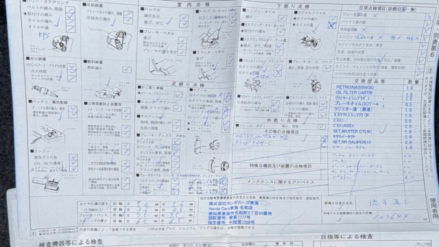 | ブレーキパッドの状態 | R7/1 F4.0mm、R4.5mm(143201km時) |