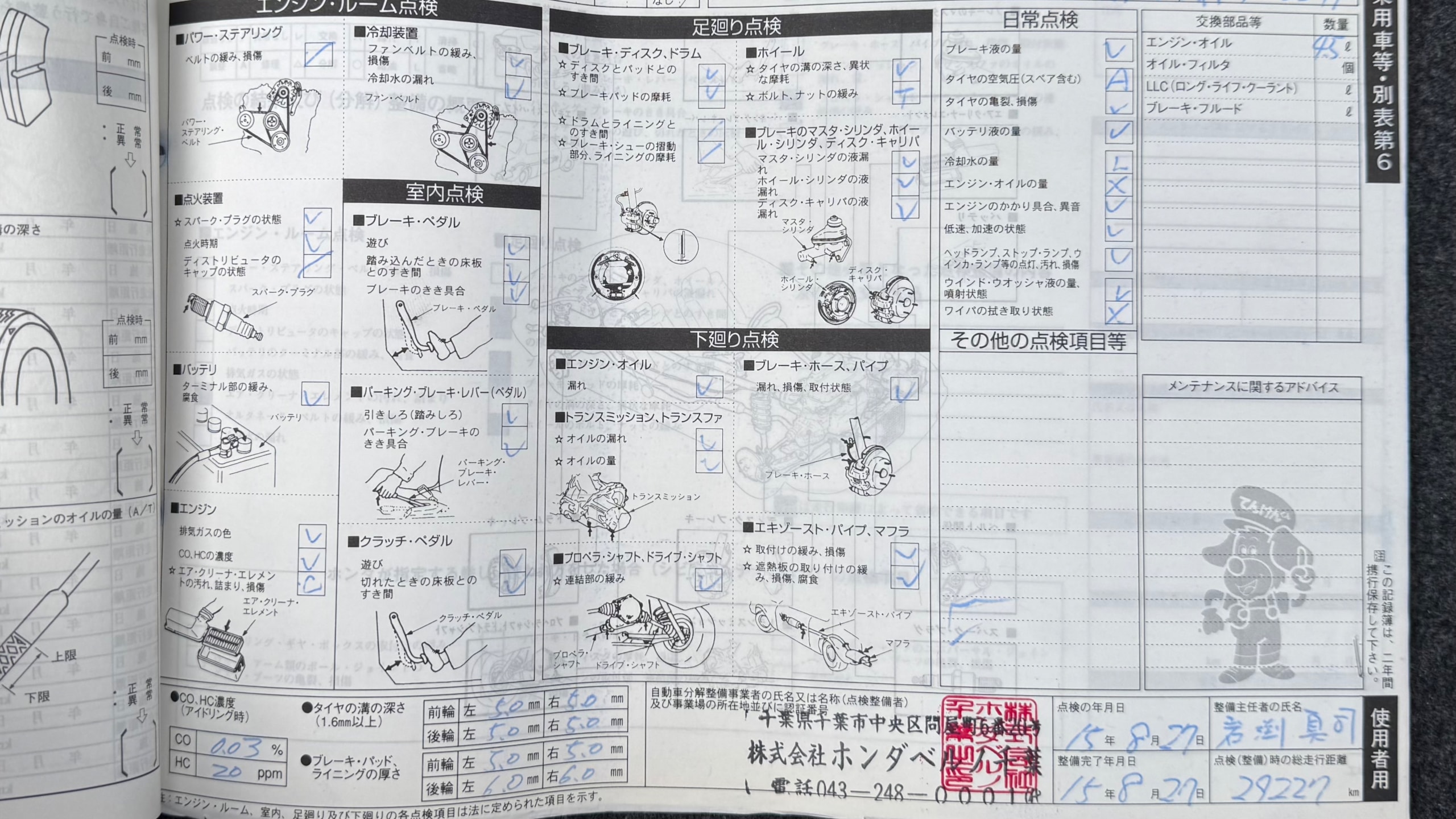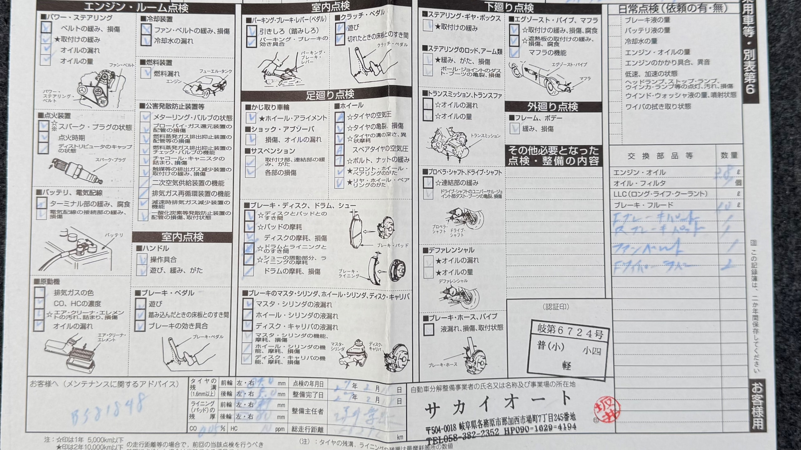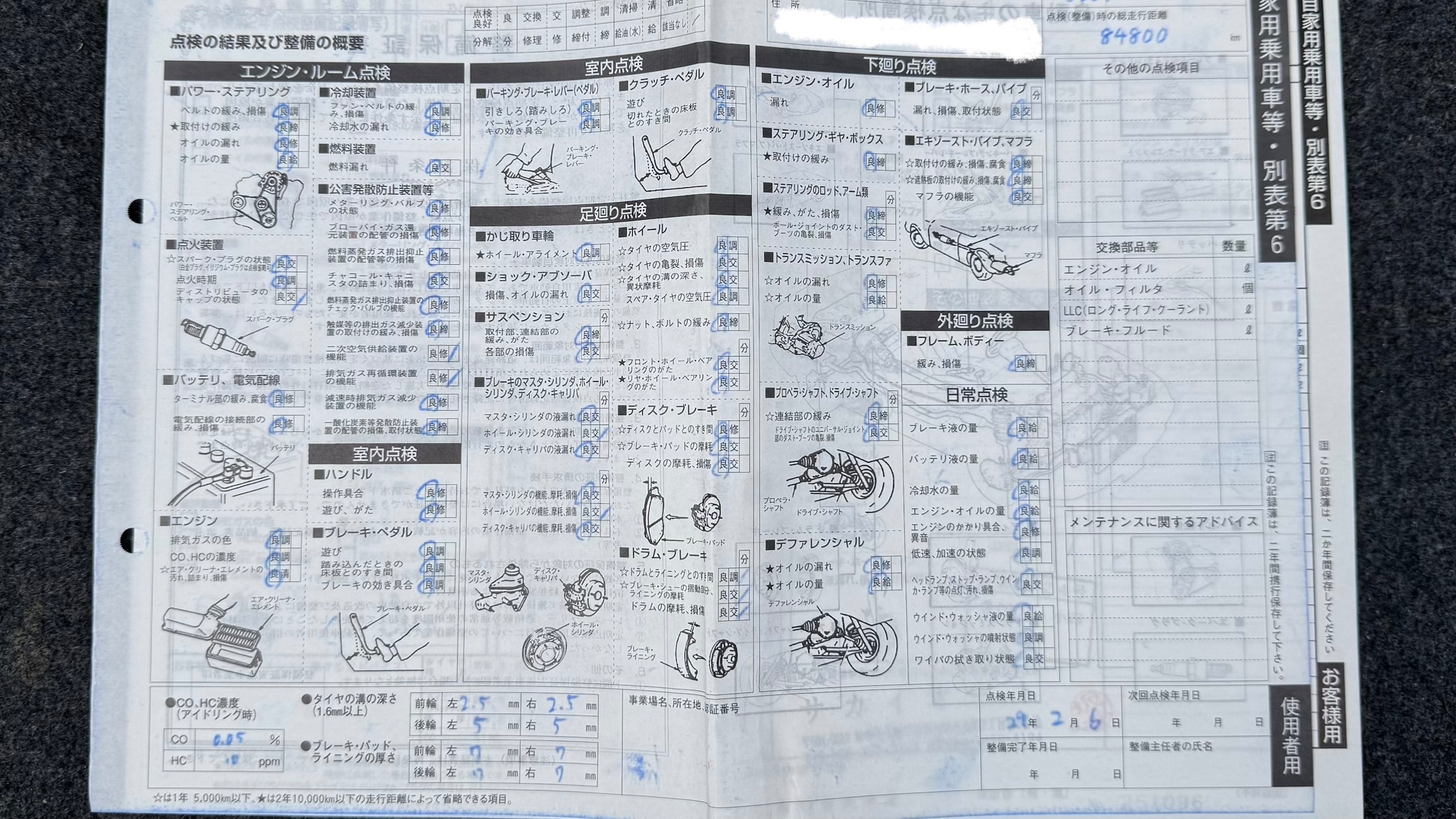 | ブレーキパッドの状態 | R7/1 F4.0mm、R4.5mm(143201km時) |