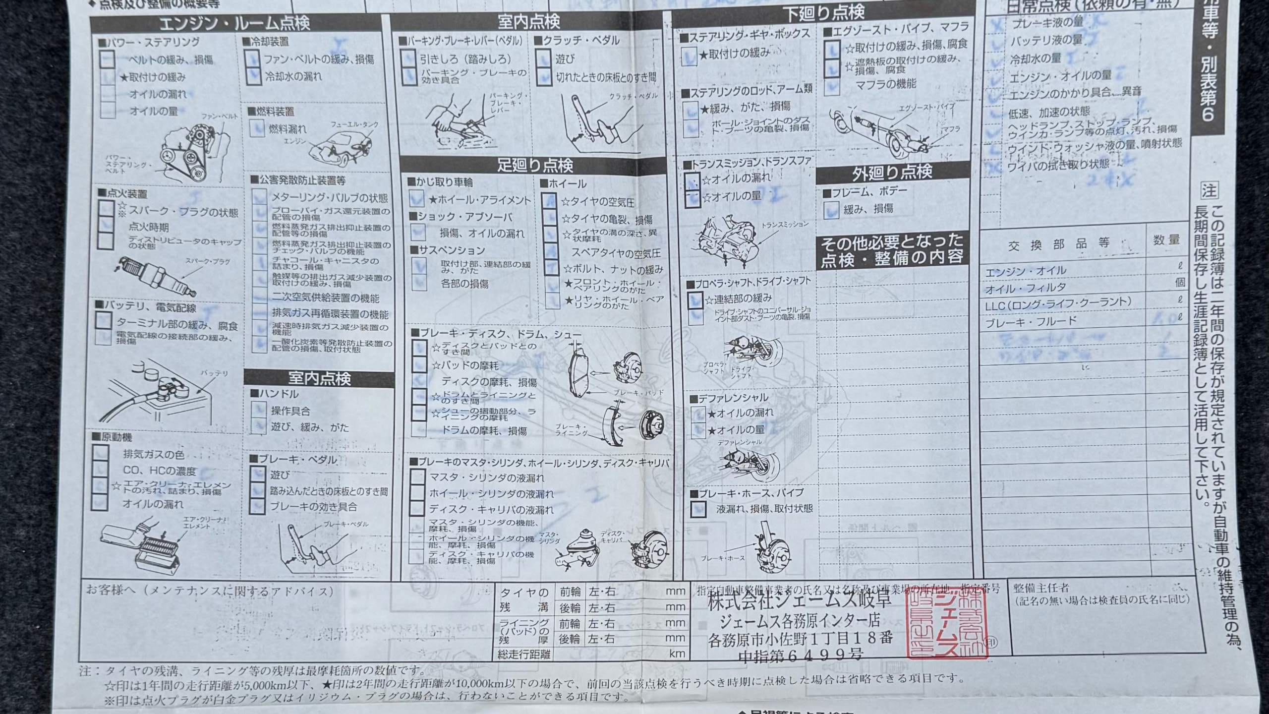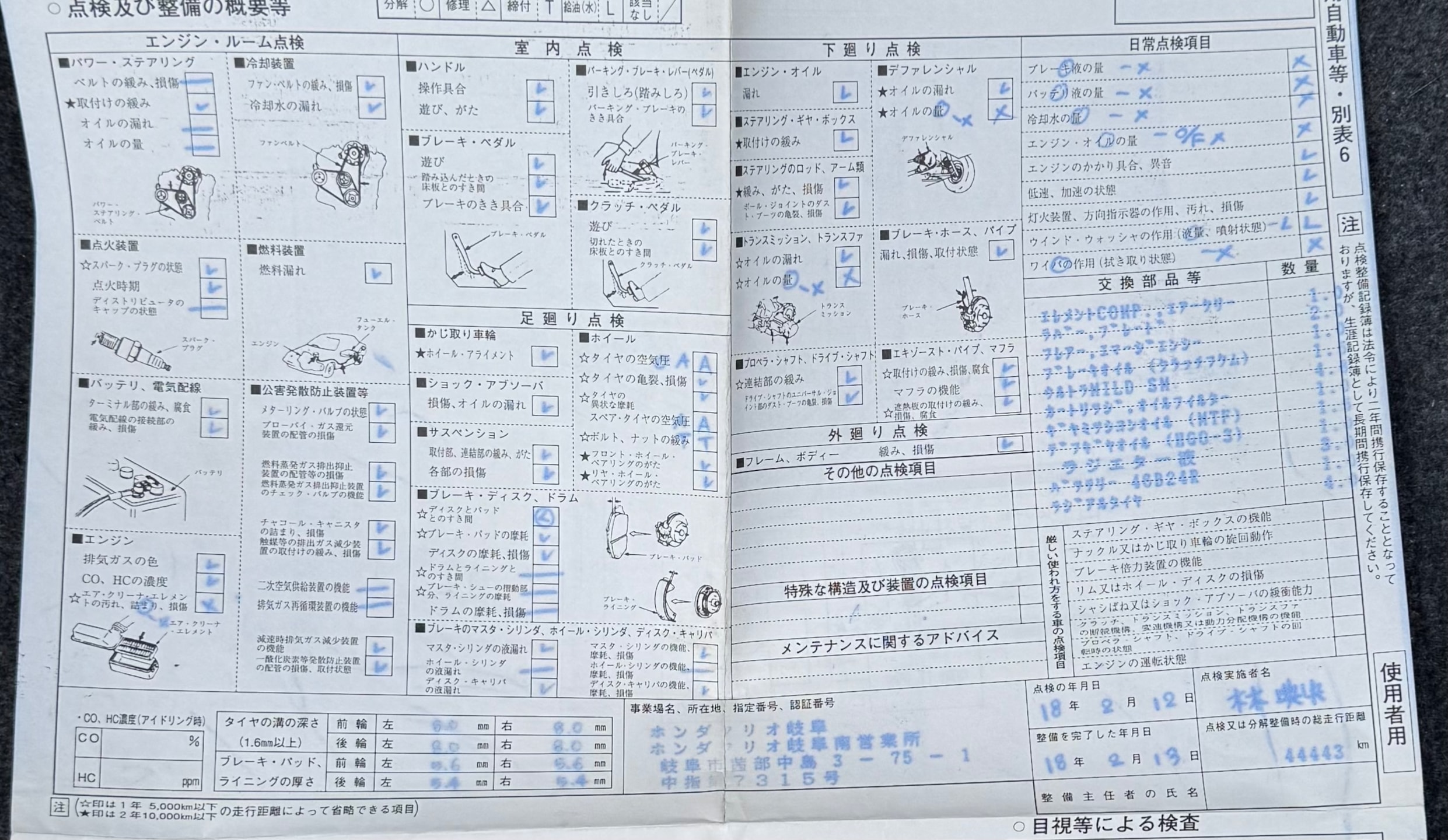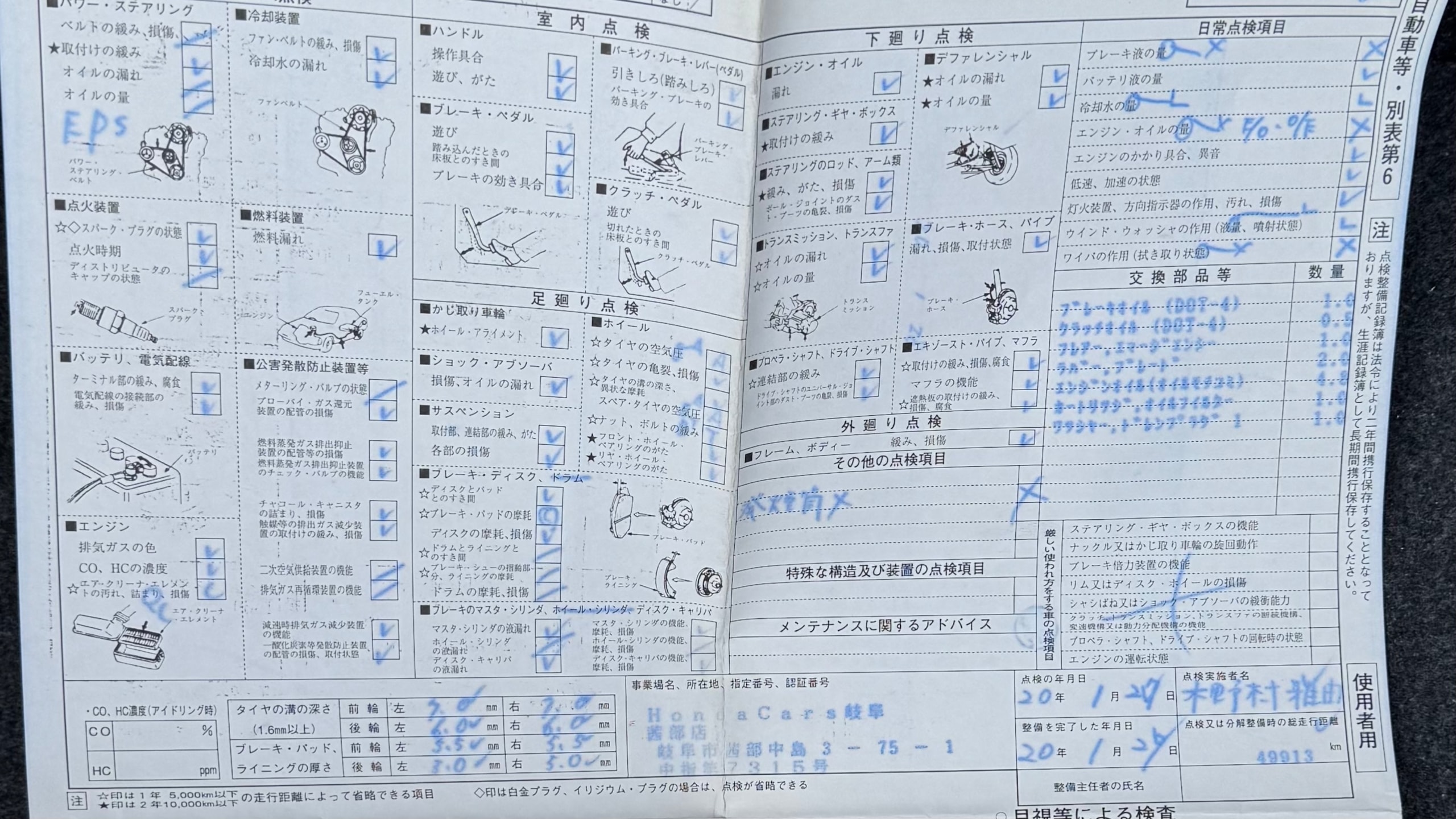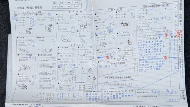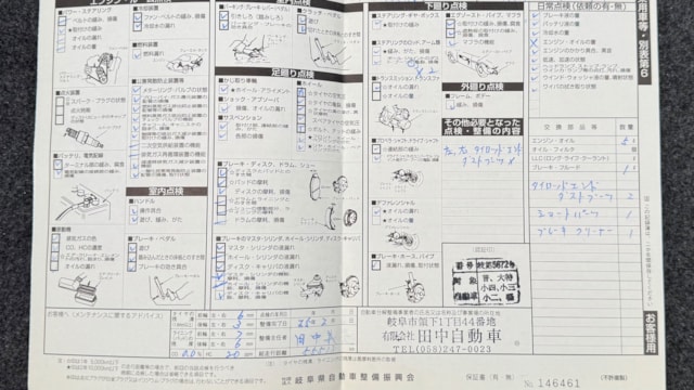 消耗品情報(S2000 ベースグレード)