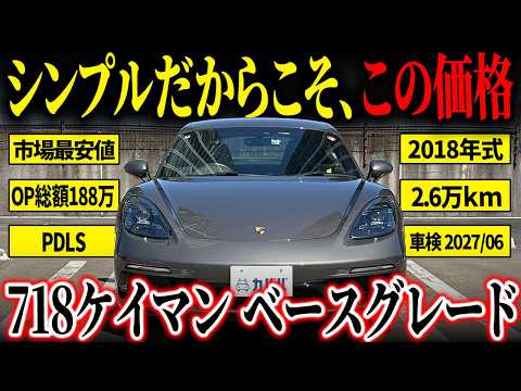【車両装備】 ◾️スポーツデザインパッケージ(ブラック塗装/ハイグロス) ◾️LEDヘッドライト(PDLS Plus) ◾️パークアシスト(前後)+バックカメラ ◾️GTスポーツステアリング ◾️2ゾーンオートクライメートコントロール ◾️アゲートグレーメタリック(有償カラー) ◾️電動可倒式エクステリアミラー ◾️カラーメーター(レーシングイエロー) ◾️カラーシートベルト(レーシングイエロー) ◾️カラークレストセンターキャップ ◾️車両盗難防止システム ◾️グレートップウィンドー ◾️スモーカーパッケージ / フロアマット 【車両紹介】 2018年式718ケイマンは、水平対向4気筒ターボエンジンをミッドシップに搭載し、優れたハンドリングとバランス性能を誇るピュアスポーツモデルです。軽快なステアリングレスポンスと高い剛性により、街乗りからワインディングまで幅広く楽しめる一台。シンプルながら質感の高いインテリアも魅力で、日常使いとスポーツドライビングを高次元で両立しています。 【本車両ならではのポイント】 総額約188万円分のメーカーオプションを装着した充実仕様が魅力です。中でもスポーツデザインパッケージにより精悍なエクステリアへと仕上げられており、PDLS Plus付きLEDヘッドライトや前後パークアシストなど実用面も抜かりありません。さらにレーシングイエローのメーターやシートベルトが内装のアクセントとなり、スポーツカーらしい特別感を演出。ポルシェセンターでの整備履歴も安心材料です。 【類似車種との比較】 同じ718ケイマンでもベースグレードは装備がシンプルな個体が多いのに対し、本車両はスポーツデザインパッケージやPDLS Plusなど高額オプションを多数装着している点が大きな優位性です。また、上位の718ケイマンSと比較するとパワー面では劣るものの、維持費や価格バランスに優れつつ、装備面では遜色ない満足度を得られる仕様となっています。 【車両状態】 ◾️外装 ・フロントガラス、ボンネット、フロントバンパー飛び石 ・ボンネット、フロントバンパータッチアップ ・フロントリップ、フロントバンパー下擦り ◾️内装 ・禁煙車 ◾️機関系 ・ポルシェセンター点検記録あり ・取材時エンジン始動良好、異音や不具合は確認されておりません。 ※自動車テスターによる診断(オーバーレブ診断含む)はカババでは実施しておりません。予めご了承ください。 お車の状態や匂い、使用状況などの詳細が気になる方は、お気軽にお問い合わせください!🚗