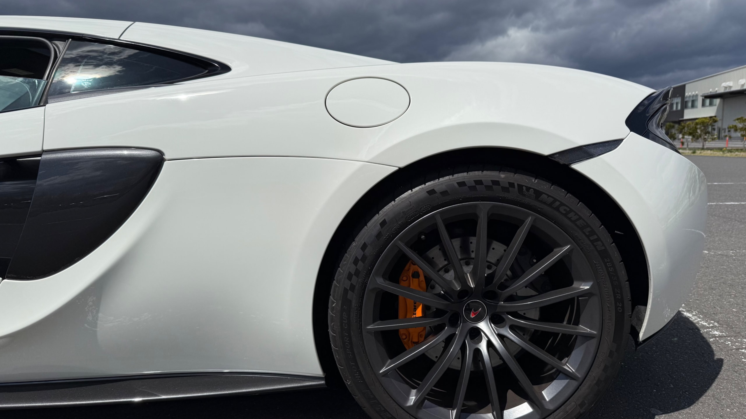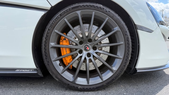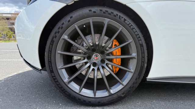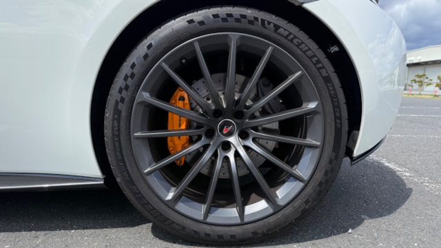 【カタログ値】 ボディーサイズ:全長×全幅×全高=4530×2095×1201mm ホイールベース:2670mm 車重:1350kg(乾燥重量) 駆動方式:MR エンジン:3.8リッターV8 DOHC 32バルブ ツインターボ トランスミッション:7DCT
