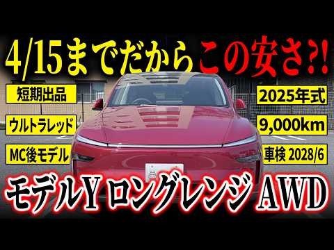 【車両おすすめ装備】 〇デュアルモーターAWD ・ロングレンジバッテリー ・オートパイロット ・15インチセンターディスプレイ ・パノラミックガラスルーフ ・前後シートヒーター ・ステアリングヒーター ・電動リアゲート ・ワイヤレス充電 ✅場所を選ばないAWDモデル! ロングレンジは、モデルYの中でも航続距離と使い勝手を重視して選ばれる人気グレードです!特に本個体はデュアルモーターAWDによる安定感ある走りに加え、電気自動車らしいスムーズな加速が可能!荷室容量も十分に確保されており、日常使いはもちろん旅行やレジャーでも活躍できるお車となっています!SUVらしい視界の高さと取り回しのしやすさで幅広い支持を得ているモデルになります。 やはり充実の装備も注目!大型センターディスプレイを軸にした先進的なコックピット、ナビゲーション、オートパイロット、シートヒーター、パノラミックガラスルーフなど快適装備をしっかり装備。スマートフォン感覚で扱える操作性もテスラならではです。 ✅ワンオーナーで低走行! 本車両はワンオーナーで走行1万km未満の低走行車両です。状態も良好なためこれから長く乗っていきたい方にも注目いただきたい1台です。またボディカラーには存在感のあるウルトラレッドを採用。周りとはひと味違う特別感とスポーティさも備えています。 また今回は新型の発売に伴うお乗り換えのため特にマイナス理由でのご売却ではございません! 満充電時の表示航続距離:約525 km 普段の充電上限設定:80% 付属品:コネクタ・アダプタ類の付属無し MCU: ryzen ハードウェア:HW4 【保証】 〇基本車両限定保証 2029年6月6日または走行距離合計80,000km(いずれか早い方)まで有効 〇バッテリー限定保証 2033年6月6日または走行距離合計192,000km(いずれか早い方)まで有効 〇ドライブユニット限定保証 2033年6月6日または走行距離合計192,000km(いずれか早い方)まで有効 【車輌状態】 〇外装 ・フロントガラス飛び石傷 ・ボンネット線キズ ・右フロントホイール薄い傷 ・右Rドア線キズ ・リヤバンパー割れ補修跡とキズ 上記見受けられました。いずれも比較的目立ちにくいものとなっており、全体としては良好な状態が保たれております。 〇内装 大きく目立つシミや破れなどはなく、良好な状態が保たれております。 禁煙車のため気になる匂いは感じられませんでした。 ペットの乗車歴などもございません。 ✅出品期限 (4/13 15時追記) 4/15 午前10時まで出品致します。ご検討中の方はお急ぎください!