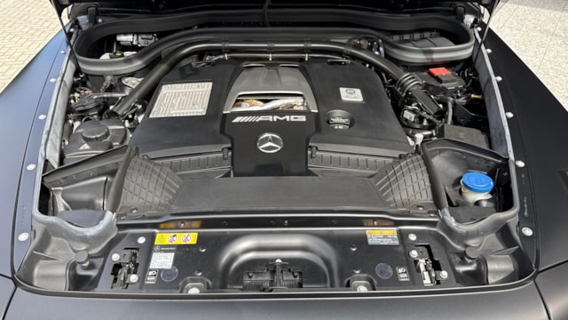 【車両カタログ値】 ボディタイプ SUV・クロスカントリー・ライトクロカン ドア数 5ドア 乗員定員 5名 型式 3BA-463276 全長×全幅×全高 4665×1985×1975mm ホイールベース 2890mm トレッド前/後 1655/1655mm 室内長×室内幅×室内高 ----×----×----mm 車両重量 2530kg エンジン型式 M177 最高出力 585ps(430kW)/6000rpm 最大トルク 86.7kg・m(850N・m)/2500~3500rpm 種類 V型8気筒DOHCツインターボ 総排気量 3982cc 内径X行程 83.0mm×92.0mm 圧縮比 8.6 過給機 ツインターボ 燃料供給装置 電子制御式燃料噴射(直噴) 燃料タンク容量 100リットル 使用燃料 無鉛プレミアムガソリン