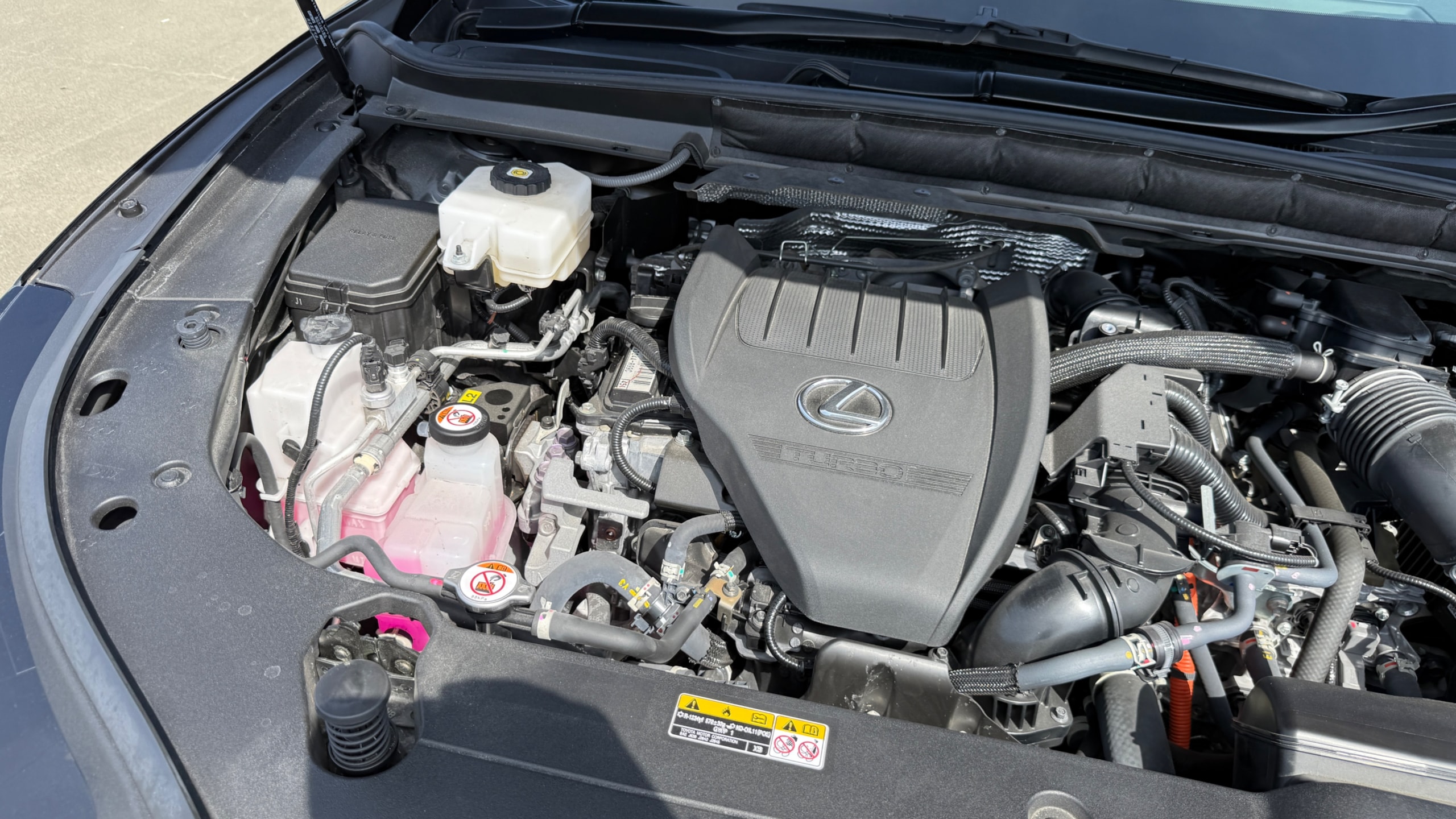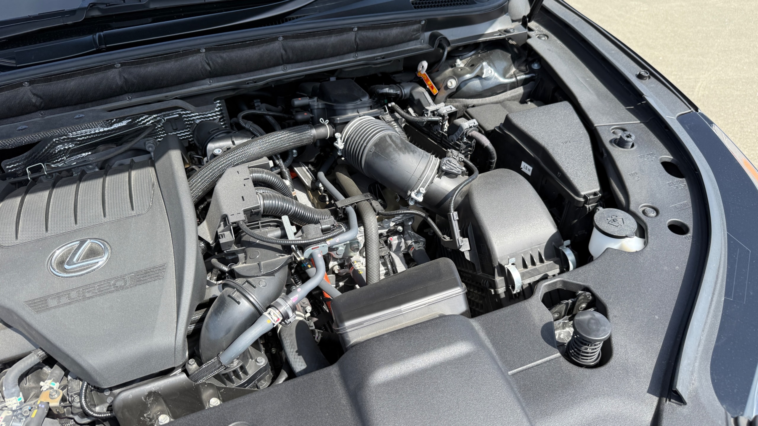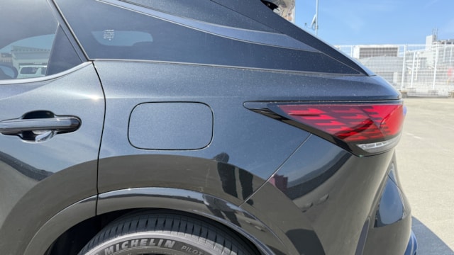 レクサス RX500h Fスポーツパフォーマンス 【カタログ値】 型式 5AA-TALH17 全長×全幅×全高 4890×1920×1700mm ホイールベース 2850mm トレッド前/後 1650/1675mm 室内長×室内幅×室内高 1915×1615×1205mm 車両重量 2100kg エンジン型式 T24A-FTS 最高出力 275ps(202kW)/6000rpm 最大トルク 46.9kg・m(460N・m)/2000~3000rpm 種類 直列4気筒インタークーラー付ターボ+モーター 総排気量 2393cc 内径X行程 87.5mm×99.5mm 過給機 IC付きターボ 燃料供給装置 筒内直接+ポート燃料噴射装置(D-4ST) 燃料タンク容量 65リットル 使用燃料 無鉛プレミアムガソリン