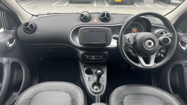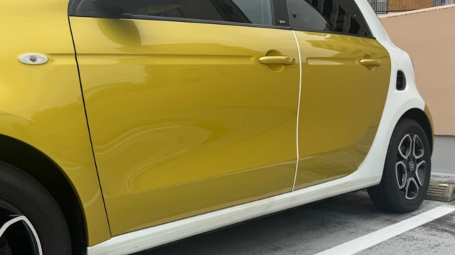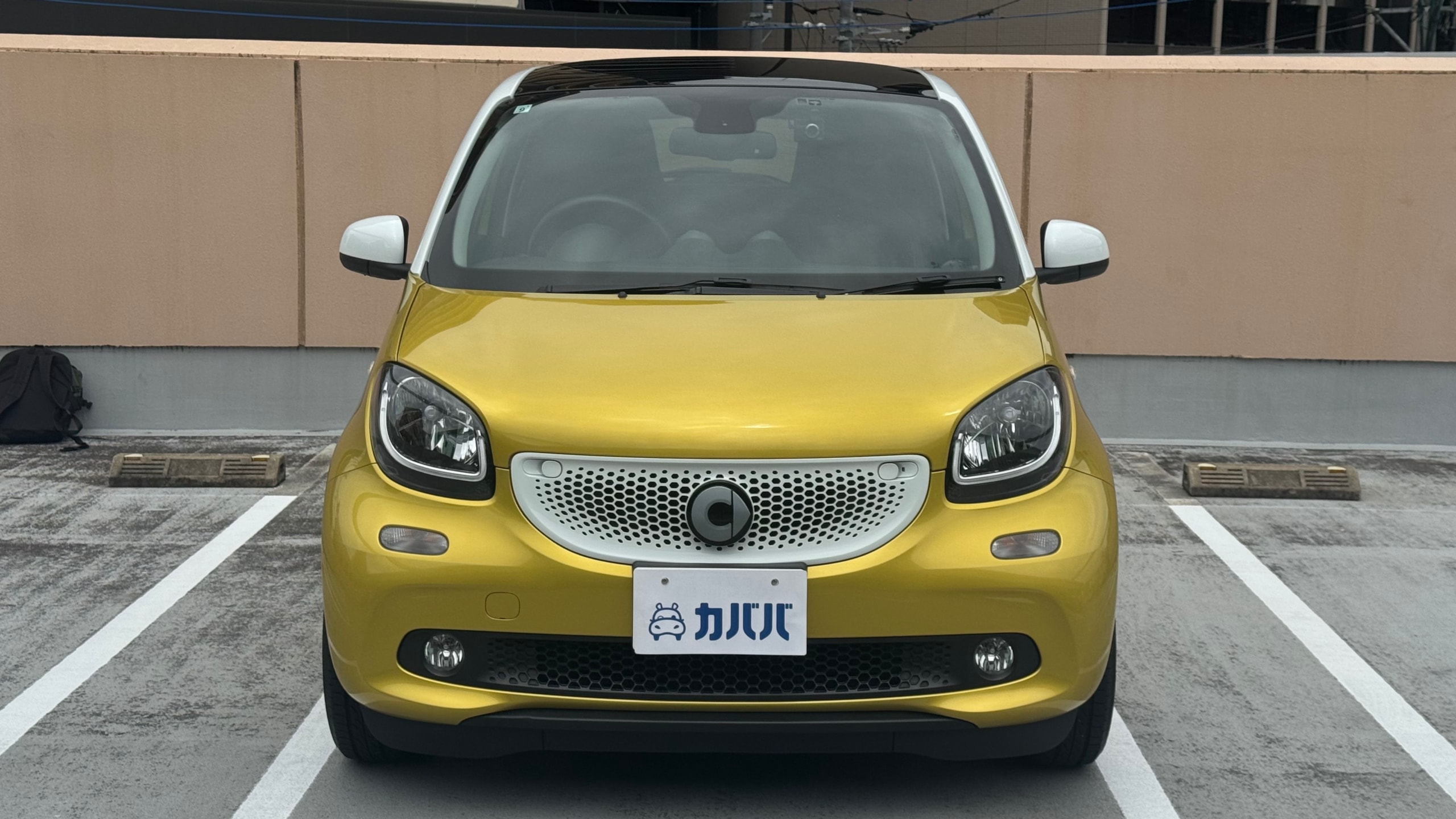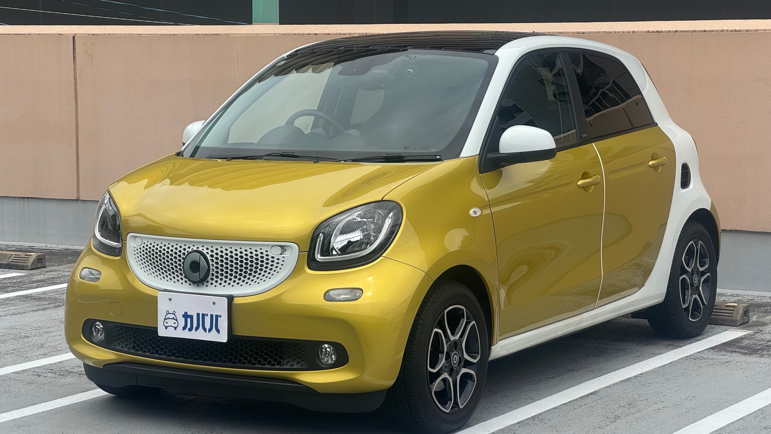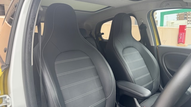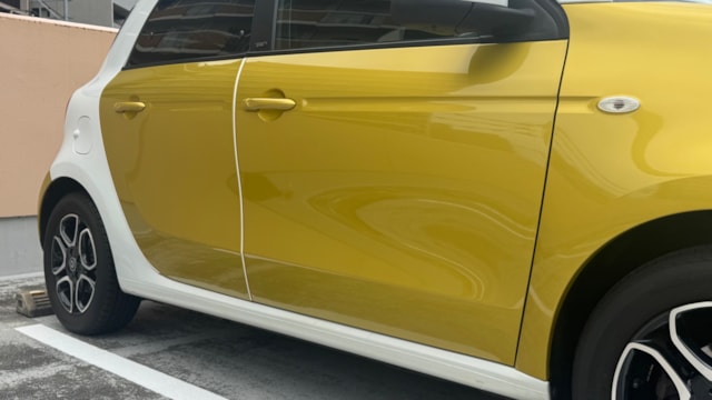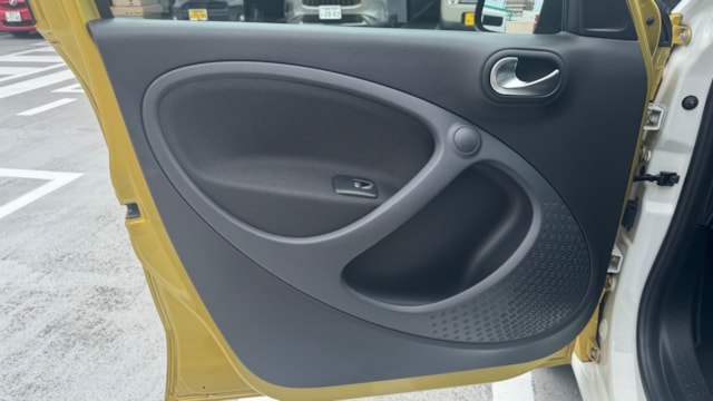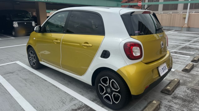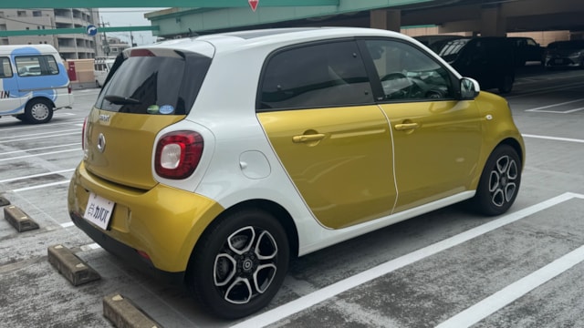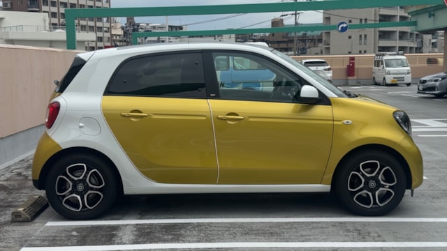 【おすすめ装備】 ・イエロー×ホワイト ツートンカラー ・ガラスルーフ ・本革シート ・シートヒーター ・クルーズコントロール ・純正ナビゲーション ・バックカメラ ・パーキングセンサー ・オートエアコン 【カスタム・付属品】 ・Stradaナビ、TV ・バックカメラ内蔵型ルームミラー ・アンテナを短いタイプに変更(純正品もお渡しします) ・ドライブレコーダー ・ETC ※トランクの写真に写っているダンボールに純正パーツが入っております。 【本車両の魅力】 スマート フォーフォー プライム は、コンパクトなボディに個性的なデザインと実用性を兼ね備えた一台です。 最大の魅力はイエロー×ホワイトのツートンカラー。街中でも目を引くデザインで、他のコンパクトカーとは一線を画す存在感があります。 RRレイアウトならではの小回りの良さで、狭い道や駐車場でも扱いやすく、日常使いに非常に適したサイズ感。それでいて4ドア仕様のため、実用性もしっかり確保されています。 さらにガラスルーフや本革シート、シートヒーターといった快適装備も充実しており、“小さいけどしっかり上質”な一台に仕上がっています。 【メンテナンス】 ・禁煙車 ・ペット乗車歴なし ・週2回ほどの利用 ・立体駐車場の中で保管 ・メンテナンス R6/8/18 R4/9/7 タイヤ4本、バッテリー交換 R3/5/13 R2/5/13 R1/5/31 【車両状態】 ●外装 ・フロントガラス、バンパーに飛び石 ・左右リアフェンダーエッジ部に小傷 ・その他、薄い線傷などありますが全体的に綺麗な状態です。 ●内装 ・全体的に使用感薄く綺麗な状態です。 ・運転席ドア内張にスレ小