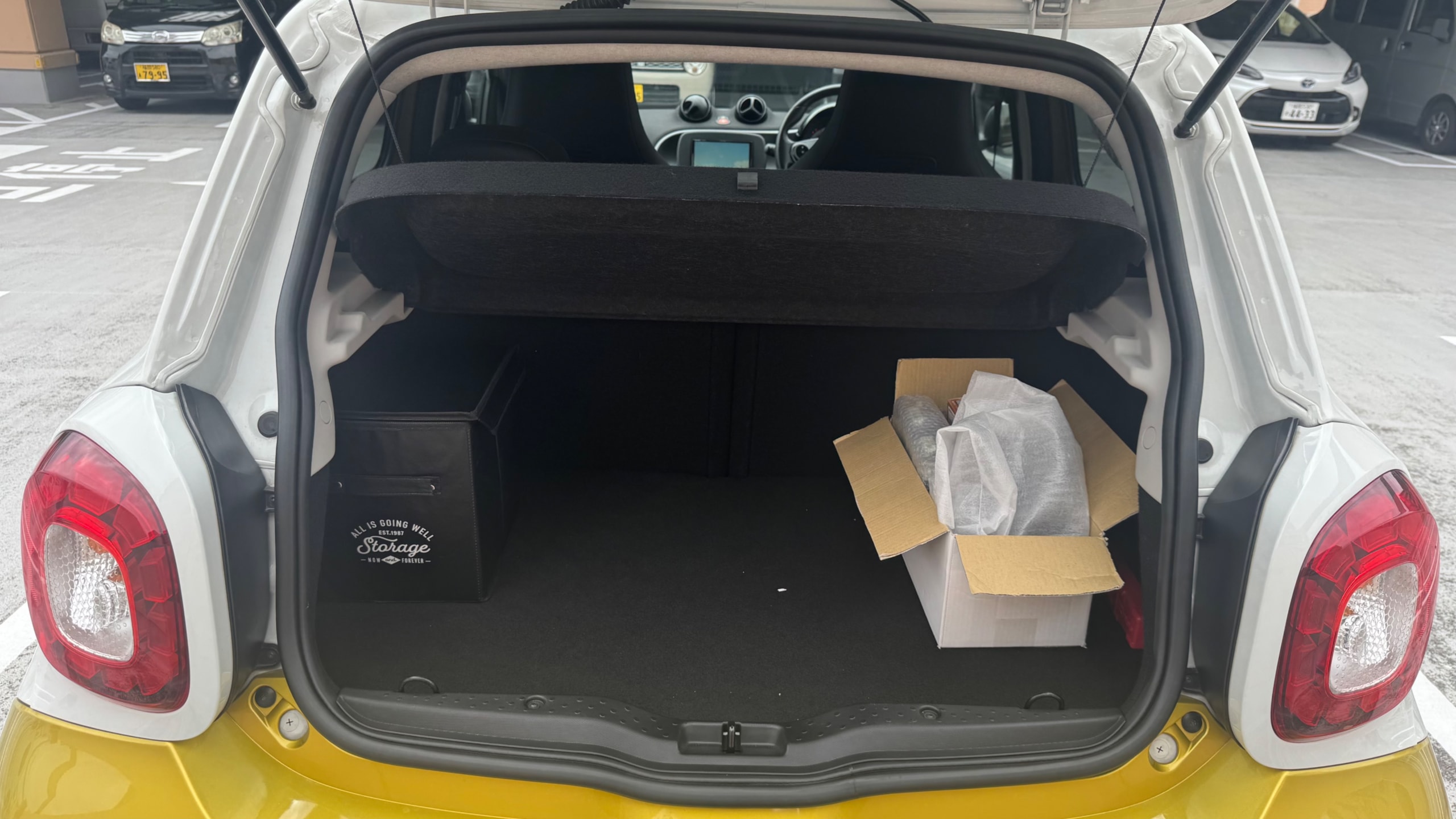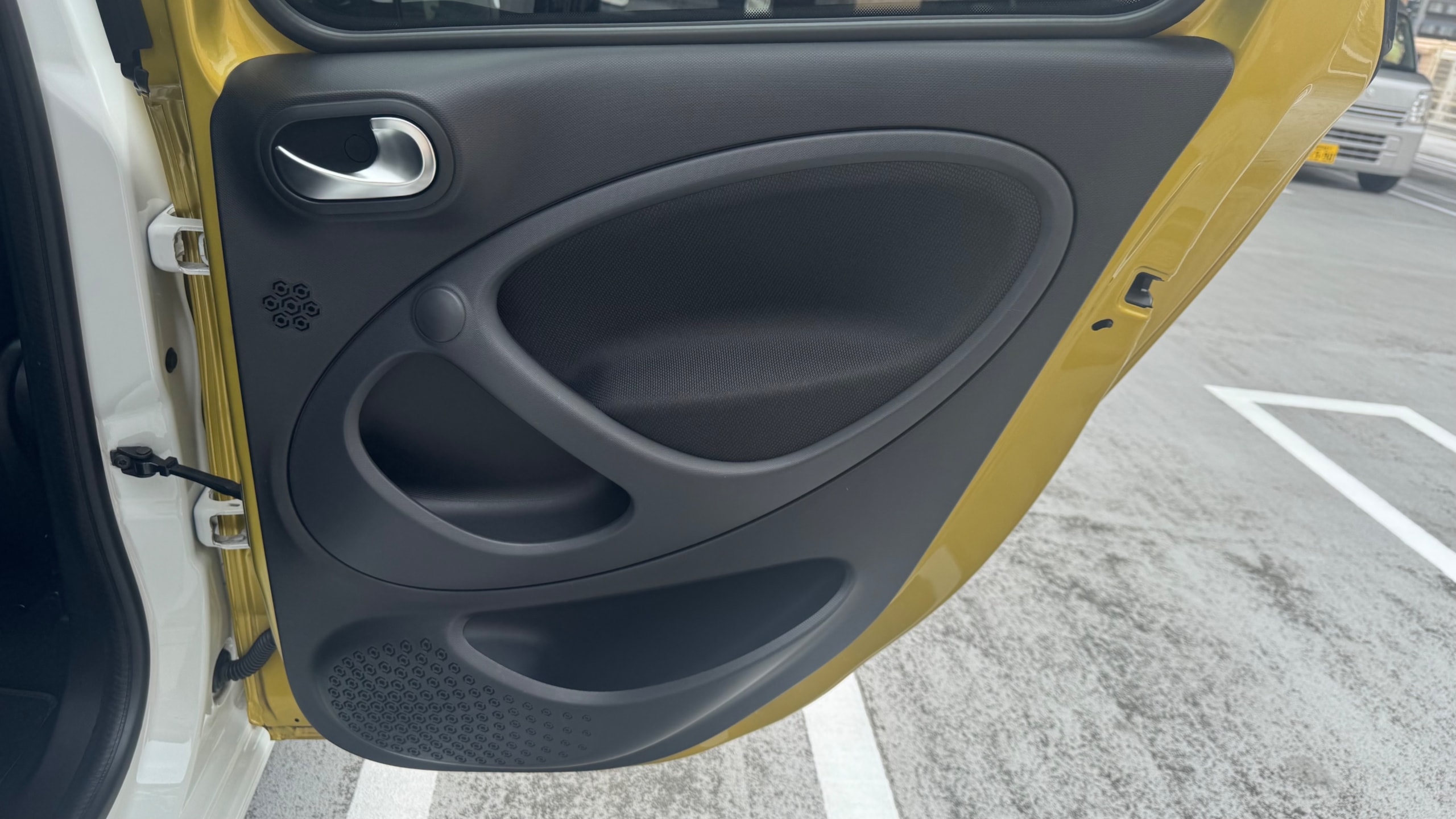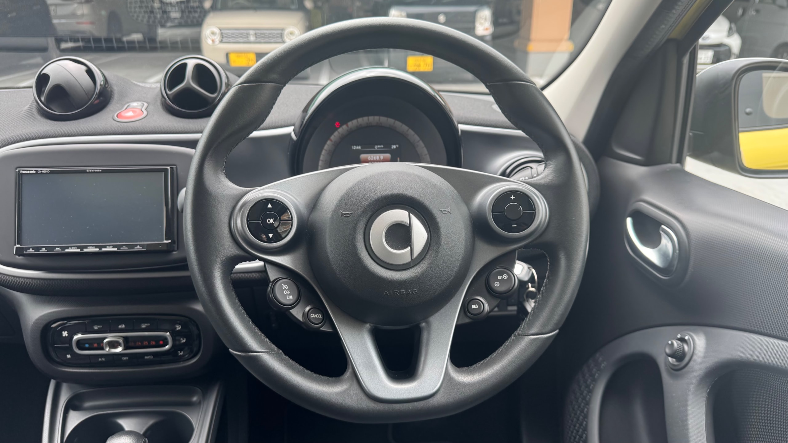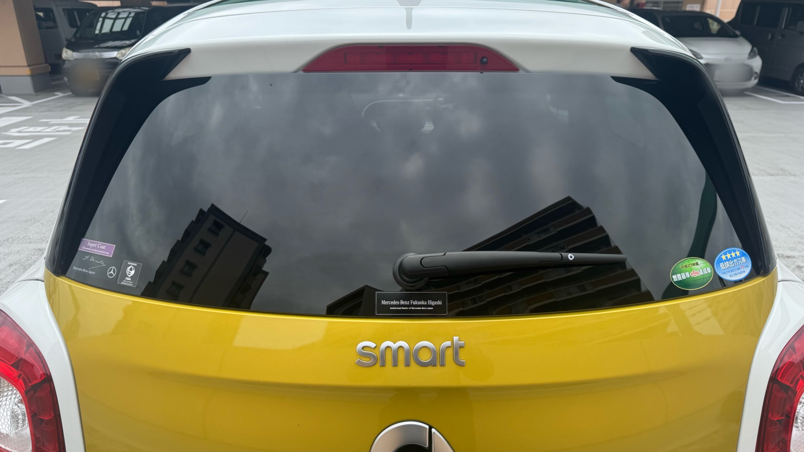 【おすすめ装備】 ・イエロー×ホワイト ツートンカラー ・ガラスルーフ ・本革シート ・シートヒーター ・クルーズコントロール ・純正ナビゲーション ・バックカメラ ・パーキングセンサー ・オートエアコン 【カスタム・付属品】 ・Stradaナビ、TV ・バックカメラ内蔵型ルームミラー ・アンテナを短いタイプに変更(純正品もお渡しします) ・ドライブレコーダー ・ETC ※トランクの写真に写っているダンボールに純正パーツが入っております。 【本車両の魅力】 スマート フォーフォー プライム は、コンパクトなボディに個性的なデザインと実用性を兼ね備えた一台です。 最大の魅力はイエロー×ホワイトのツートンカラー。街中でも目を引くデザインで、他のコンパクトカーとは一線を画す存在感があります。 RRレイアウトならではの小回りの良さで、狭い道や駐車場でも扱いやすく、日常使いに非常に適したサイズ感。それでいて4ドア仕様のため、実用性もしっかり確保されています。 さらにガラスルーフや本革シート、シートヒーターといった快適装備も充実しており、“小さいけどしっかり上質”な一台に仕上がっています。 【メンテナンス】 ・禁煙車 ・ペット乗車歴なし ・週2回ほどの利用 ・立体駐車場の中で保管 ・メンテナンス R6/8/18 R4/9/7 タイヤ4本、バッテリー交換 R3/5/13 R2/5/13 R1/5/31 【車両状態】 ●外装 ・フロントガラス、バンパーに飛び石 ・左右リアフェンダーエッジ部に小傷 ・その他、薄い線傷などありますが全体的に綺麗な状態です。 ●内装 ・全体的に使用感薄く綺麗な状態です。 ・運転席ドア内張にスレ小