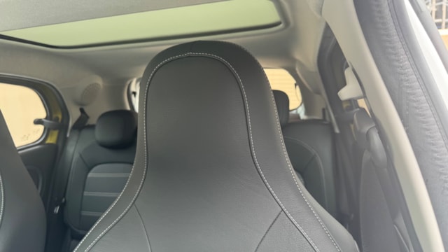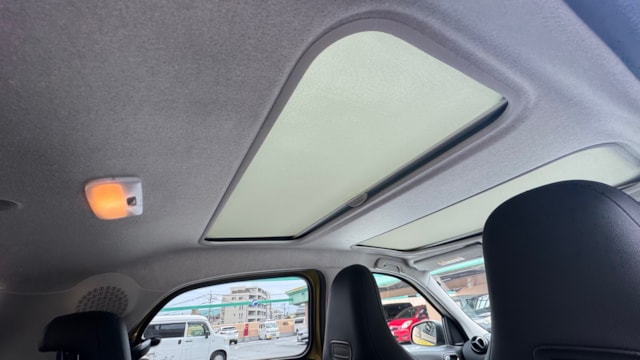見た目の可愛さと扱いやすさが魅力の一台です。ツートンカラーでしっかり個性もあり、街乗りでの使いやすさはかなり高いと思います。ガラスルーフや本革シートなど装備も充実していて、コンパクトながら満足度の高い仕様。普段使いを楽しくしたい方におすすめです。