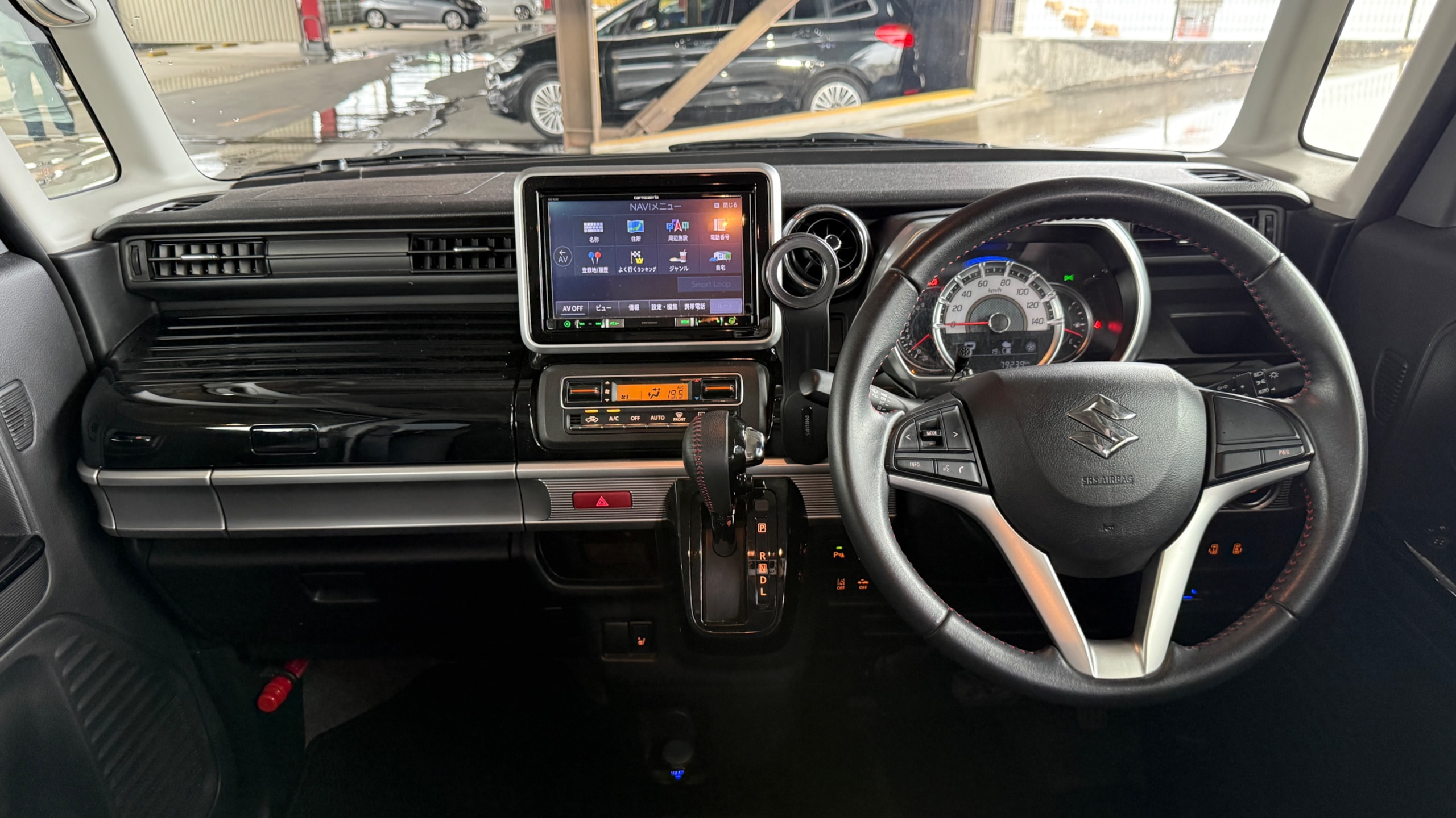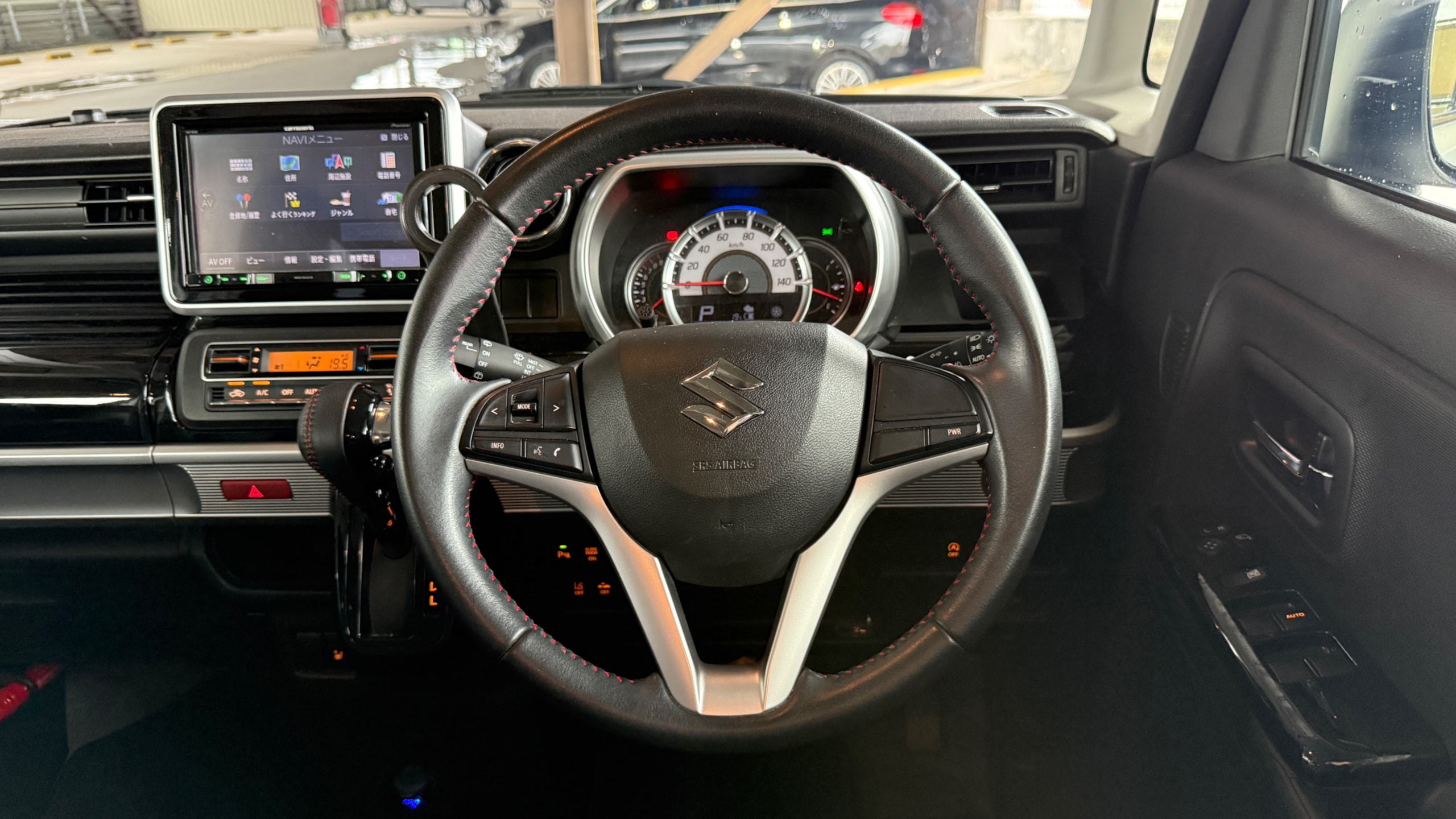 【車両装備】 ◎carrozzeriaナビゲーション ◎ドライブレコーダー ◎ETC ◎ケータイホルダー ◎両側パワースライドドア ◎運転席シートヒーター 【車両説明】 2019年式スズキスペーシアカスタムハイブリットXSがカババに登場です!!本車両は軽とは思えない高級感と先進装備を兼ね備えた一台となります。 ⚫︎エクステリア 軽ハイトワゴンとは思えない迫力あるデザインが魅力です。 フロントには大型メッキグリルとシャープなLEDヘッドライトを採用し、かなり存在感のある顔つきに仕上がっています。 さらに、エアロ形状のバンパーやサイドシルエットも直線基調で、スタイリッシュかつ力強い印象となります。 両側パワースライドドアにより、見た目だけでなく使い勝手も抜群で街中でもアウトドアでも映える、まさに“カスタム”らしい外観です。 ⚫︎インテリア 内装はブラックを基調とした上質なデザインで、軽自動車とは思えない質感の高さがポイントです。 シートはしっかりとしたホールド感があり、長時間の運転でも疲れにくい設計でインパネ周りにはメッキ加飾やピアノブラックパネルが使われており、高級感もしっかり確保されております。 室内空間はスーパーハイト系ならではの広さで後席も足元・頭上ともに余裕があり収納スペースも多く、日常使いからファミリー用途までしっかり対応できます。 【こんな方にオススメ】 ✅維持費を抑えつつ、見た目にもこだわりたい方 ✅ファミリーで使える広い軽自動車を探している方 ✅街乗りメインだけど快適性も重視したい方 【メンテナンス情報】 ・H31 8月点検済み(1760km時) ・R2 1月点検済み(3436km時) ・R2 7月点検済み(8019km時) ・R3 7月点検済み(16191km時) ・R4 7月点検済み(30087km時) ・R6 7月点検済み(59924km時) 【車両状態】 ⚫︎外装 Fバンパーにスレを伴う割れ、左右サイドシル下部にスレ、ルーフ/ボンネットにエクボ、左右F.Rドア/左右F.Rフェンダーに点傷・線傷、右Fドアエッジ/左Fドアに錆傷が見受けられました。 ⚫︎内装 グローブボックスに小傷、シートに軽微な小傷が見受けられました。 ⚫︎匂い 取材時電子タバコの香りが感じられました。 ※悪天時撮影のため細かい小傷は取れてません。