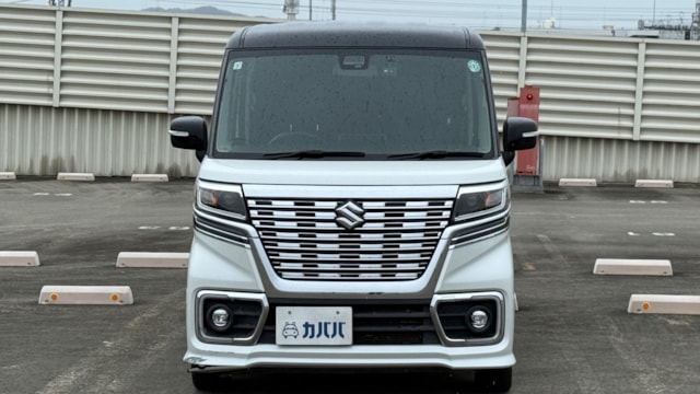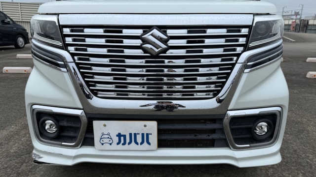 2019年式 スズキ スペーシアカスタム ハイブリッド XSがカババに登場です! 専用のバンパーやグリルが軽自動車とは思えないほど力強いフェイスに仕上がっております。 ぜひご検討ください!