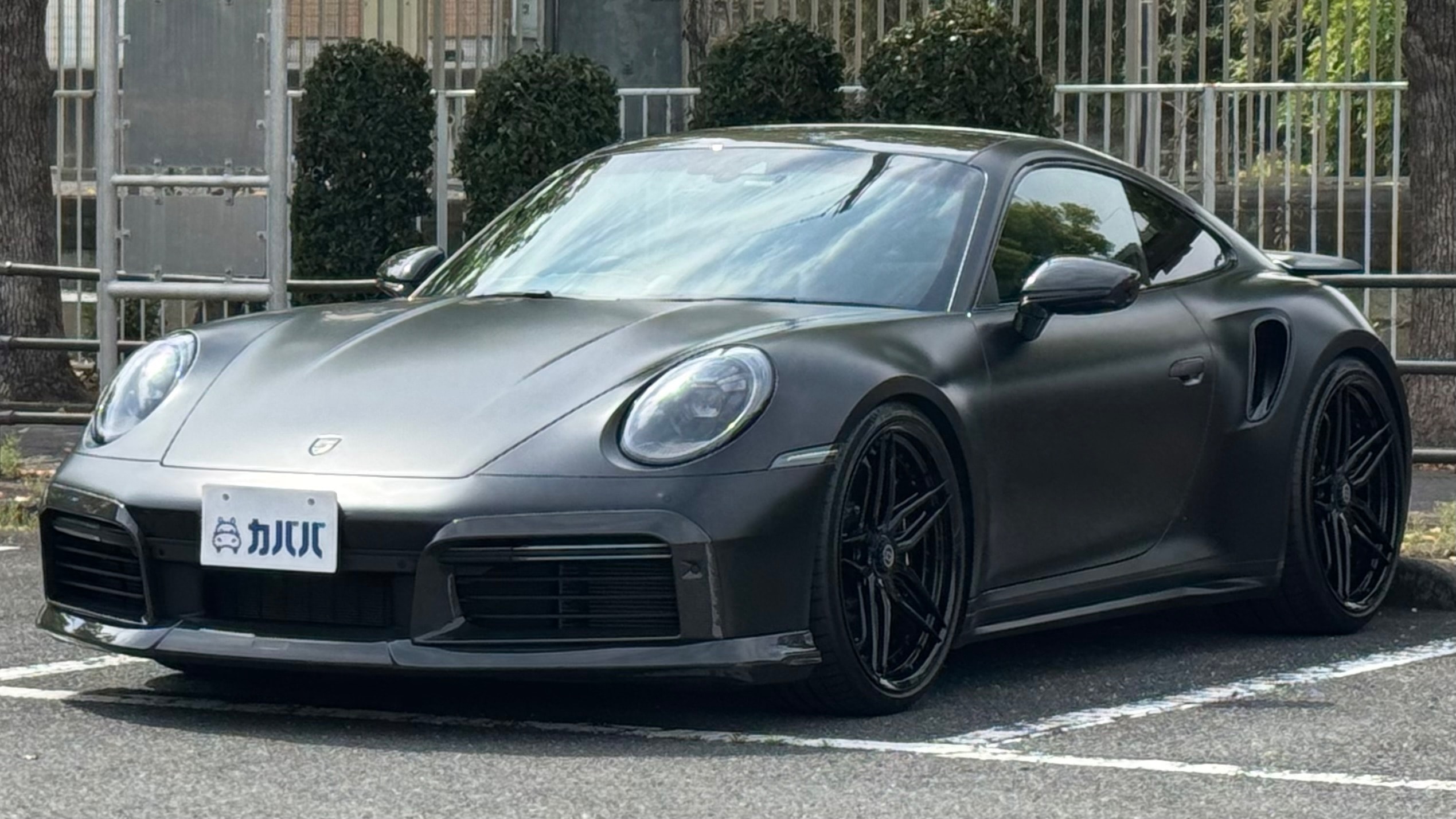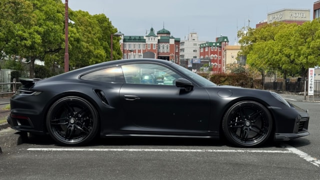 「純正の枠を超えた、圧倒的な存在感とパフォーマンス」 これほどまでに完成度の高い911 ターボSは、市場でも極めて稀です。 ステルスフィルムによる重厚なマットブラックの外装に、HREの鍛造ホイールとBRABUSのカーボンが加わることで、見る者を圧倒する凄みがあります。 単なるドレスアップに留まらず、KW Ver4やアクラポピッチの採用など、走りの質感向上に一切の妥協がありません。内装もレーシングイエローの差し色と高品質なレザー、カーボンの組み合わせが非常にセンス良くまとめられています。 屋内保管によるコンディションの良さはもちろん、世界中のクルマ好きが憧れるパーツで構築された、まさにドリームカーと呼ぶにふさわしい一台です。
