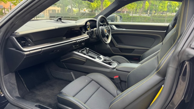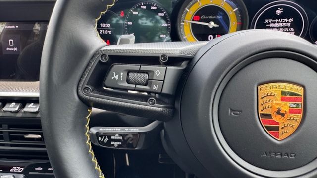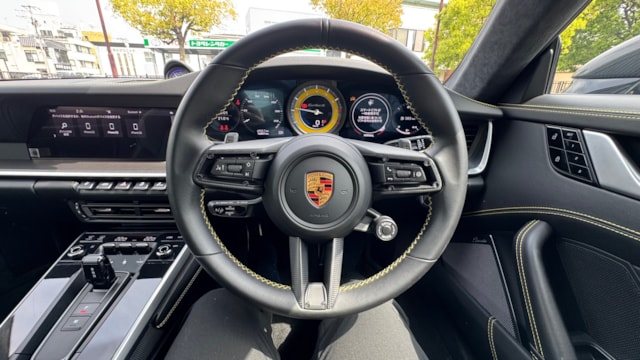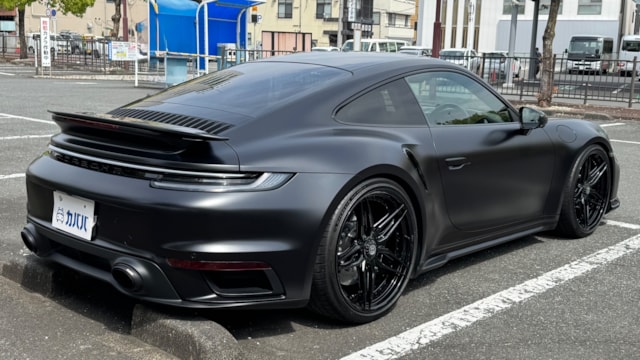 【車両オススメ装備】 ■ KW Ver4 車高調   ■ホイール HRE S107SC ・FR21&RR22inch+Michelin PS4S ■BRABUS製 カーボンフロントスポイラー ■BRABUS製 カーボンフロントファシアインサート ■アクラポピッチ製マフラー ・スリップオン・レースライン(チタン) ・テールパイプセット(チタン) – ブラック ・リンクパイプセット(キャット付き)(200 cpsi キャット、SS) ■エクスペル ステルスプロテクションフィルム施工 ■カーグラフィックPSEコントローラー ■軽量カーボンルーフ(593,000円) ■スポーツデザインミラー、上部カーボントリム(248,000円) ■サイドウィンドートリムブラック(ハイグロス)(79,000円) ■リアサイドエアインテーク ブラック ペイント(ハイグロス)(84,000円) ■インテリアトリムパッケージ、コントラストカラーステッチ(515,000円) ■シートセンター SportTex チェッカーフラッグブラック ■LEDカーテシーライト(24,000円) ■「PORSCHE」ロゴ ブラックペイント仕立て(ハイグロス)(44,000円) ■PASM(ポルシェアクティブサスペンションマネジメント)付スポーツサスペンション(車高を10mm低く設定)(248,000円) ■スポーツエグゾースト(ハイグロスブラックテールパイプ)(513,000円) ■パワーステアリングプラス(44,000円) ■フロントリフトシステム(402,000円) ■ホイールハイグロスブラック塗装仕上げ(198,000円) ■LEDマトリックスヘッドライト ブラック(PDLS plus付)(102,000円) ■Exclusiveデザインテールライト(139,000円) ■軽量防音プライバシーガラス(313,000円) ■レーンチェンジアシスト(137,000円) ■イオナイザー(48,000円) ■アンビエントライト(84,000円) ■カラーシートベルト"レーシングイエロー”(74,000円) ■スピードメーターダイヤル"レーシングイエロー"(58,000円) ■モデルロゴ付きストレージコンパートメンリッド(38,000円) ■ポルシェクレストエンボスヘッドレスト(フロント)(38,000円) ■ステアリング コラムケーシング レザー仕上げ(60,000円) ■スポーツシートプラスバックレストレザー、マットカーボンインレイ(367,000円) ■レザー仕上げのキー、レザーポーチ付き(レーシングイエロー)(74,000円) ■ドアトリムパッケージレザー(218,000円) ■ベルトアウトレットトリムRace-Tex(64,000円) ■Race-Texサンバイザー(69,000円) ■ヒーター付きマルチファンクションGTスポーツステアリングホイールマットカーボンパネルスムーズレザー仕上げ(103,000円) ■ブルメスターハイエンドサラウンドサウンドシステム(531,000円) ■発光式マットカーボンドアシルガード(169,000円) ■PCCB(ポルシェセラミックコンポジットブレーキ) ■PDCC(ポルシェダイナミックシャシーコントロール) ■PTV plus(ポルシェトルクベクタリングプラス) ■リアアクスルステアリング ■クルーズコントロール ■18wayアダプティブスポーツシートプラス(運転席メモリー付) ■シートヒーター(前席) ■純正PCMナビゲーション ■サラウンドビューカメラ ■前後パークアシスト ■エントリー&ドライブ(スマートキー) 《重要》アルミとマフラー変更しないと車検が通らないので予めご周知ください。 アルミ、マフラー、サスペンションの純正品お渡し可能です。 受け渡しは、郵送(着払い)でのお渡しになります。 【この車両のアピールポイント】 2021年式ポルシェ「911 ターボS」が出品しました!!最高出力650馬力を誇るフラッグシップモデルをベースに、世界最高峰のカスタムパーツと純正オプションが惜しみなく投入された、唯一無二の個体です。 走行距離は17,000km、常に屋内保管され大切に維持されてきました。 外装にはエクスペル製のステルスプロテクションフィルムをフル施工しており、マットな質感がターボSの筋肉質な造形をより一層際立たせています。 走りの質とスタイルを極限まで高めたコンディション良好な一台! この車両のオススメポイント! 「HRE・BRABUS・アクラポ・KW。世界の一級品パーツを凝縮した至高のターボS」 本車両の最大の特徴は、妥協のないアフターパーツの選択にあります。 足元にはHRE製S107SC(F21/R22インチ)とKW Ver4車高調を組み合わせ、BRABUS製カーボンエアロで武装。排気系にはアクラポピッチ製チタンマフラーを装備し、官能的なエグゾーストノートを奏でます。 内装も数千万円クラスの車両に相応しく、ブルメスター・ハイエンドサウンドやカーボンルーフ、ナチュラルレザー、そしてレーシングイエローのアクセントが散りばめられた豪華仕様。純正オプションと最高級カスタムが融合した、圧倒的なオーラを放つパッケージです。 【気になる車両の状態】 ■車内・エアコンのニオイ エアコンの吹き出し口からの臭いに関しては、不快な臭いは感じられませんでした。 ■エンジン始動と振動 取材時エンジンの始動や不穏な振動、現状の設備に不具合や異音などは確認取れませんでした。 ■ガラスのキズ・状態 フィルムの上に飛び石跡が見受けられました。 ■車両状態 全体的に大きな傷や損傷などは見受けられず、評価点も5点を獲得できるレベルとなっており、内装は当然タバコの臭いや不快な臭い